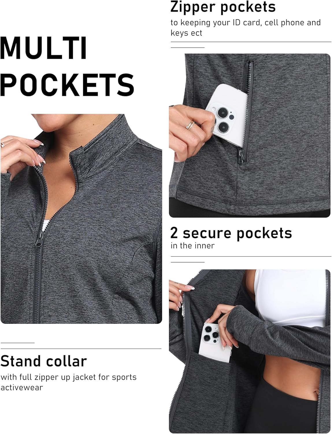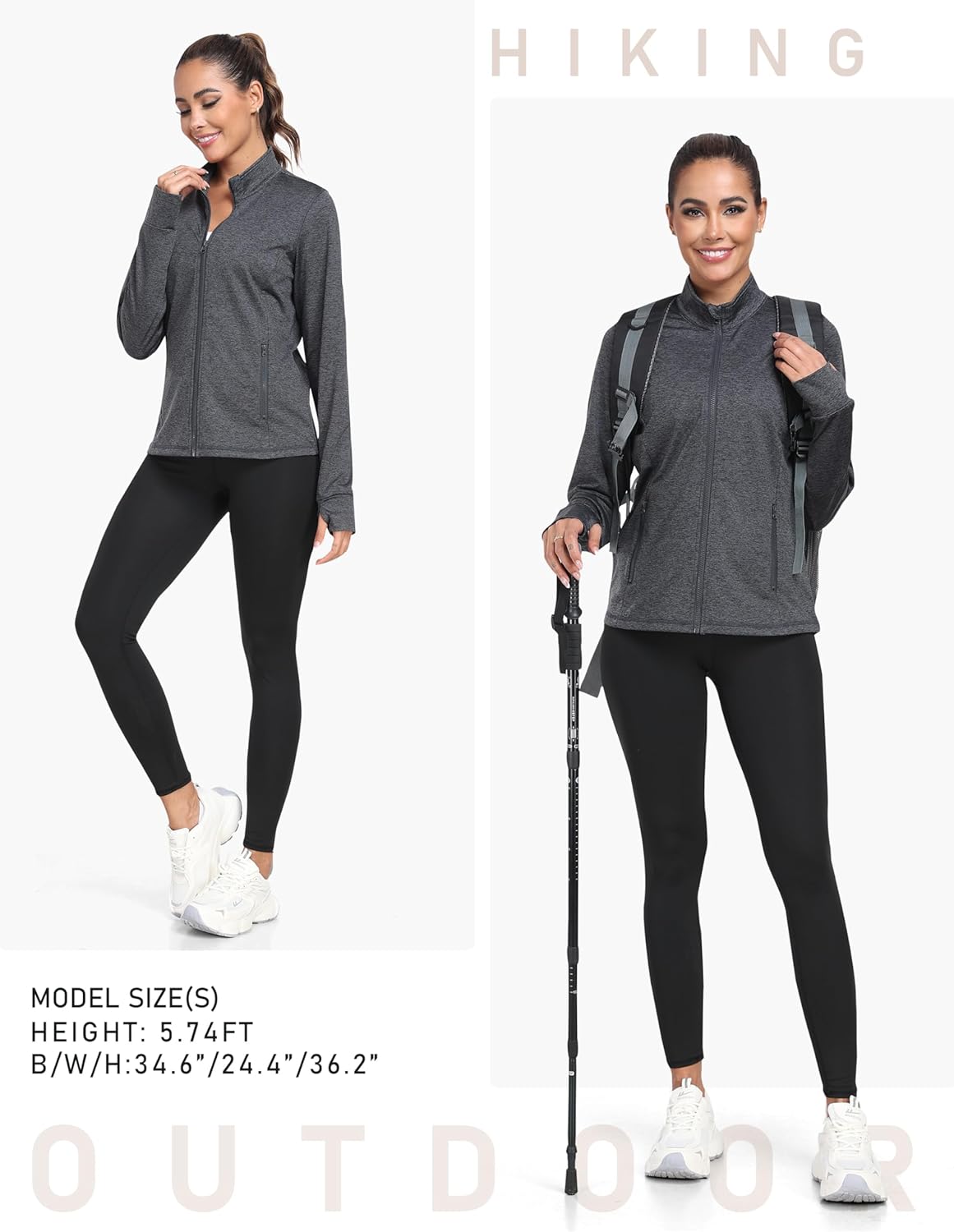 - ◆ Fleecejacke Damen Leicht Langarm Laufjacken mit daumenloch halten die Ärmel an Ort und Stelle und die Hände warm.