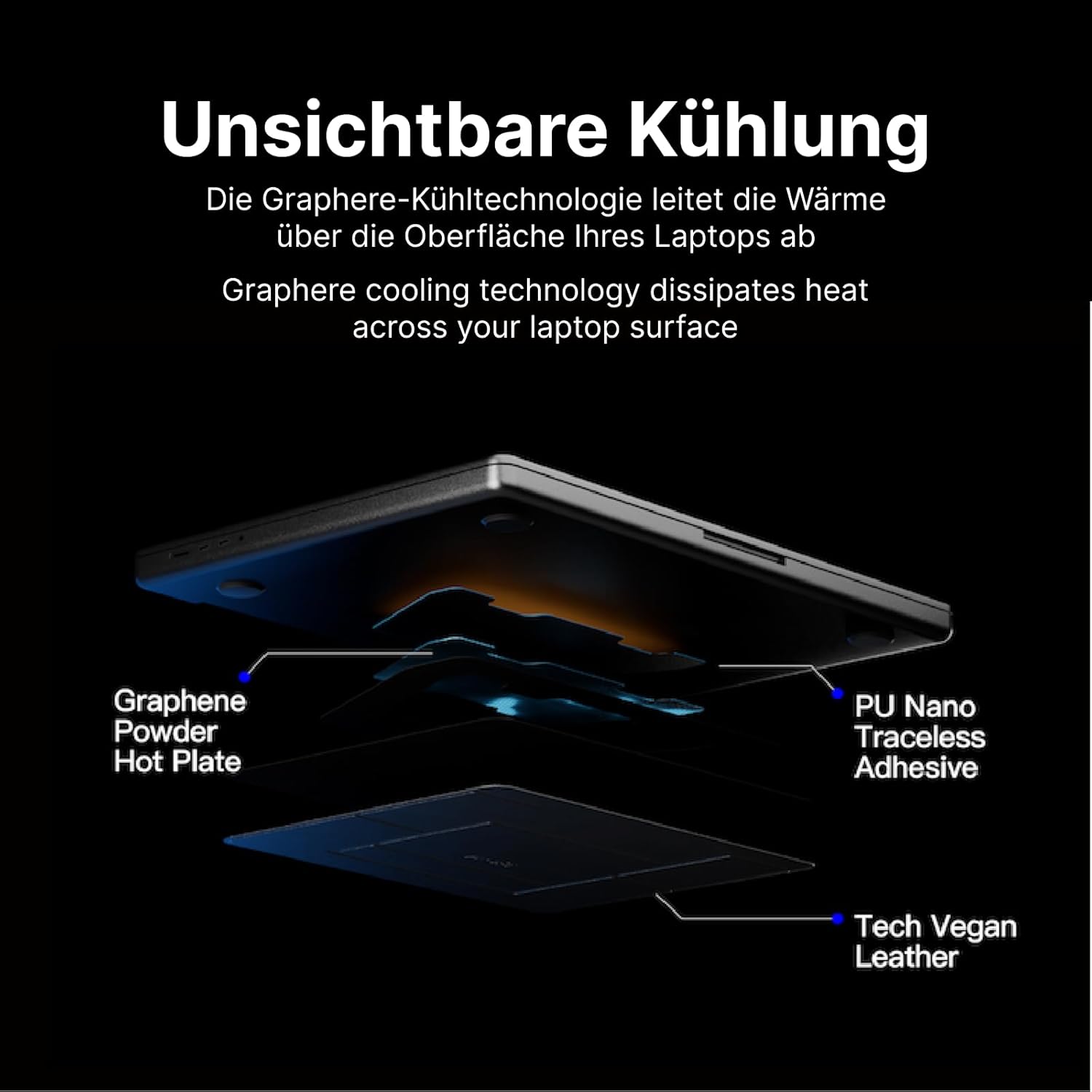 - Graphen-Kühlung: Immer wenn Ihr Laptop während der Videobearbeitung, beim Fotodesign oder beim Multitasking überhitzt, kühlt er aktiv die Wärme auf der CPU-Oberfläche um durchschnittlich 5 °C ab, mit dem höchsten Kühlgrad von 8 °C bis 10 °C