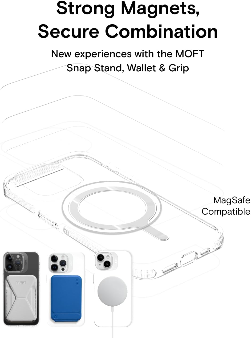 - [Mächtige Magnete] - Entwickelt für das iPhone 15, verfügt es über eine starke Magnetkraft, um MagSafe-Zubehör wie MOFTs Snap-on Phone Stand & Wallet, Snap Phone Tripod Stand und Snap Battery Pack zu befestigen und neue Erfahrungen mit einem