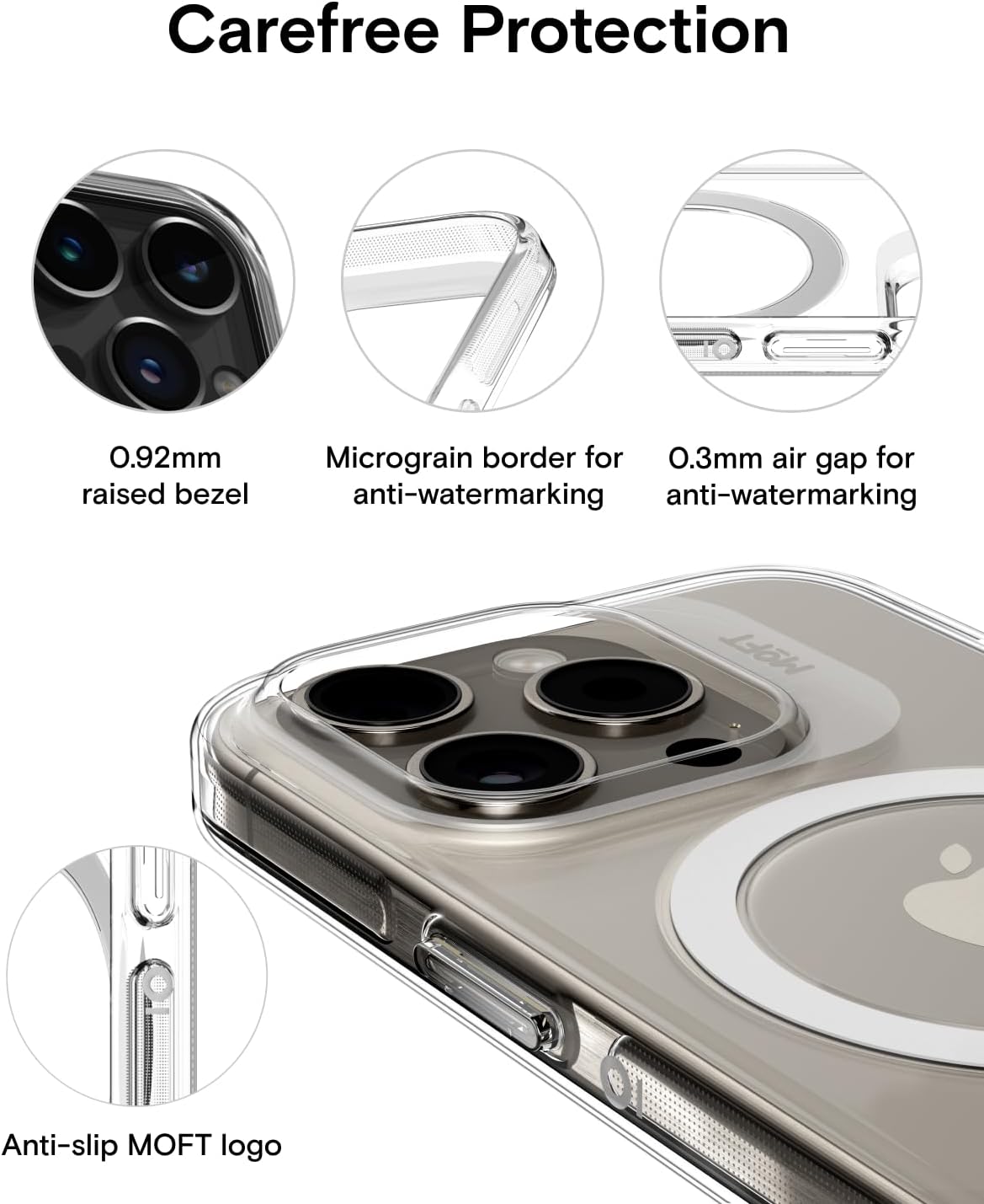 - [Sorgloses Design] - Raffinierte Details verbessern Ihr Telefonerlebnis: ein mikrogekörnter Rand und ein 0,3-mm-Luftspalt zur Vermeidung von Wasserflecken, ein feines MOFT-Logo für rutschfesten Seitenhalt und ein raffiniertes Material, das sich glatt