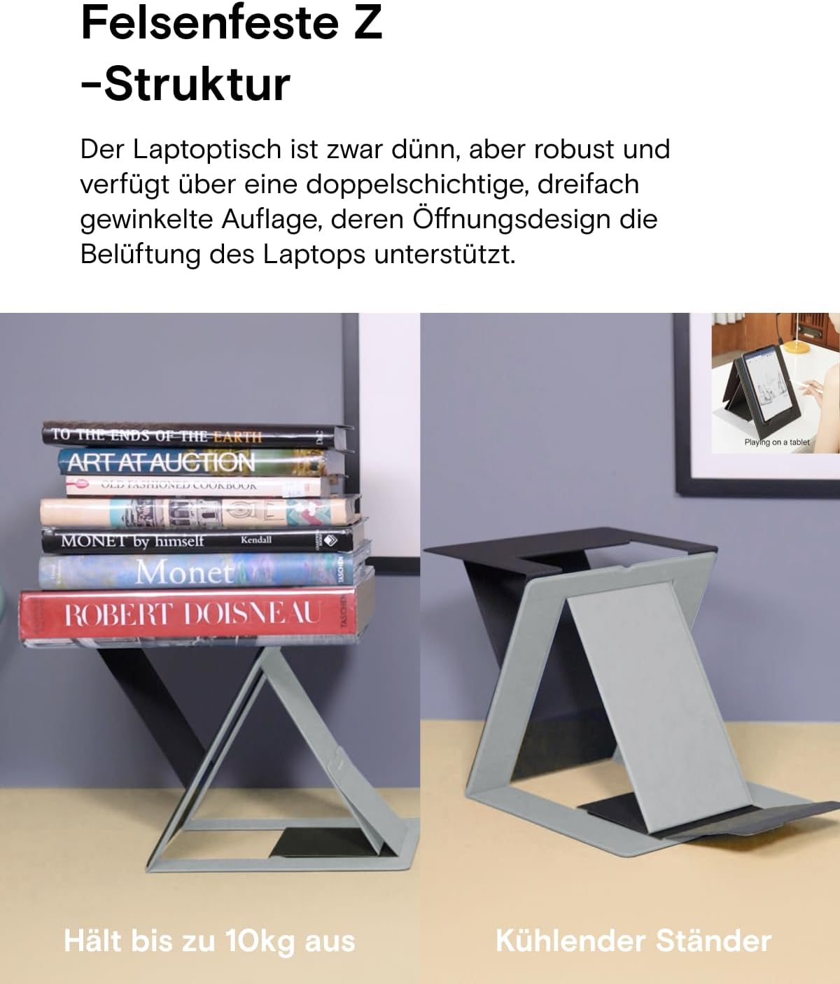 - CONFIGURAR CON 1 SEGUNDO: Los imanes evitan que el LaptopStand se suelte cuando está en movimiento. Cuando esté listo para trabajar, se desarrolla en segundos.