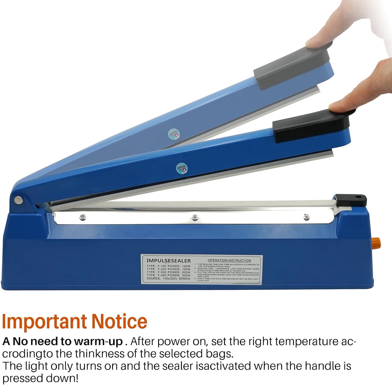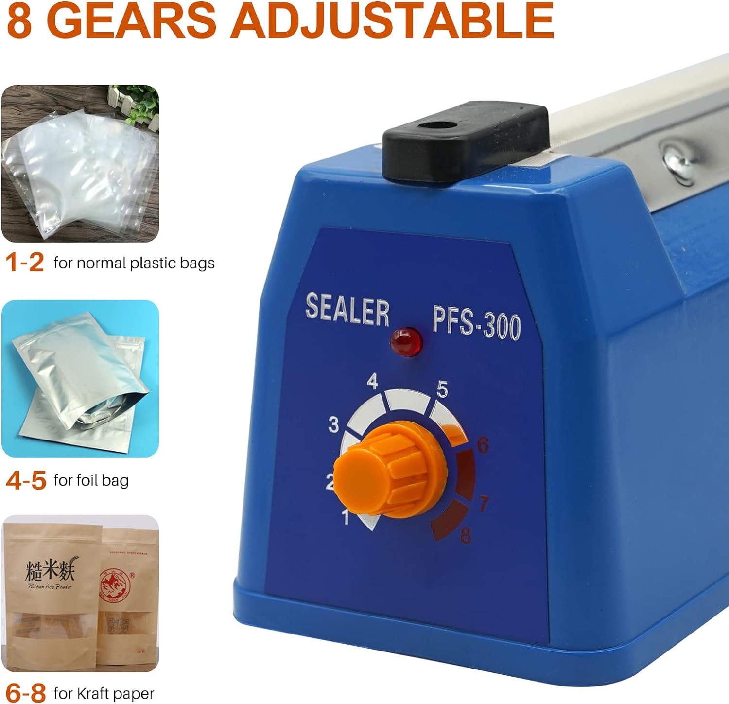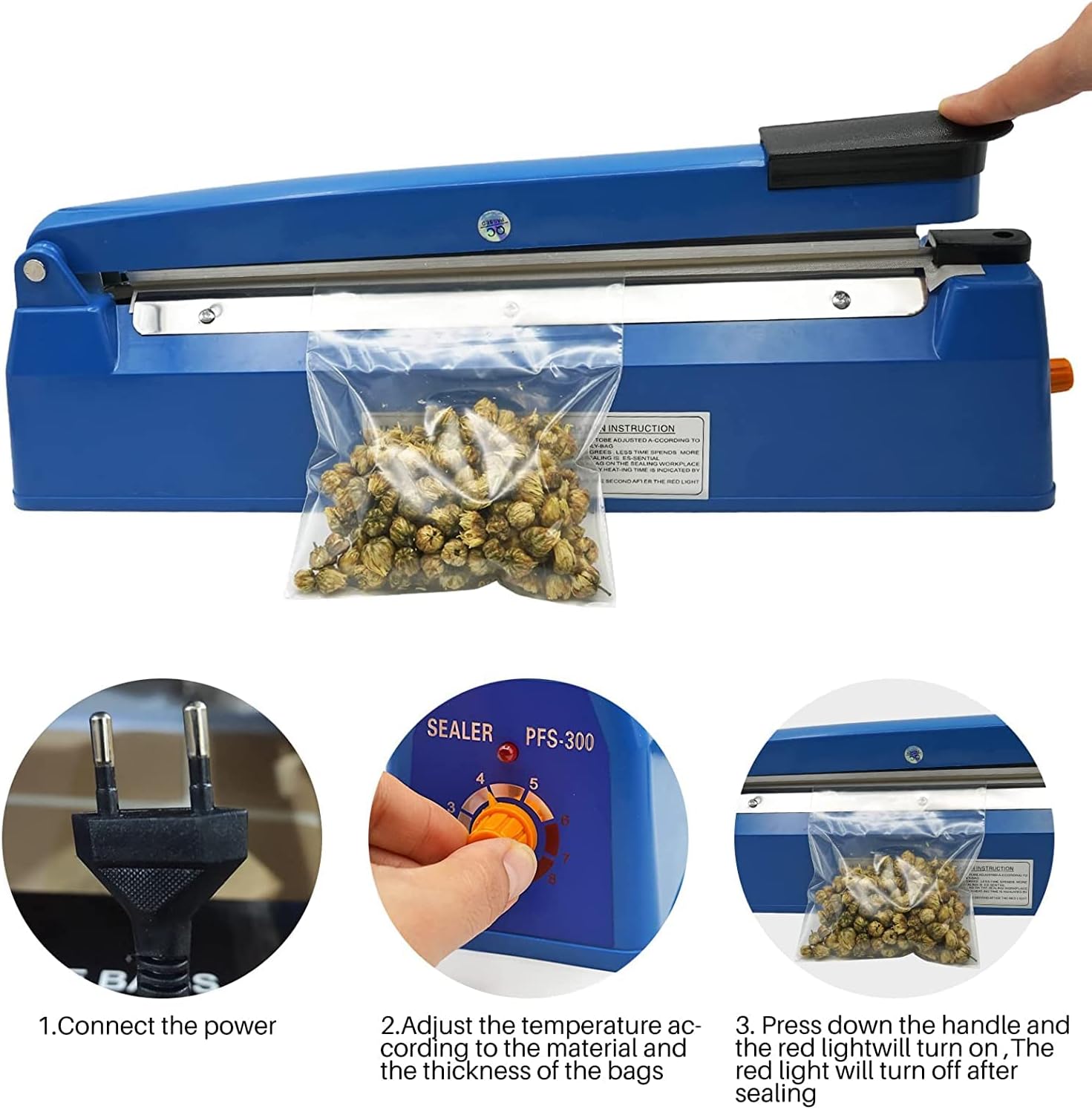 - 【Anpassbare Temperatur】Heisssiegelmaschine kommt mit 8-fach Temperaturregelung, so dass Sie jeden Mylar PE- und PP-Beutel in Ihrem täglichen Leben versiegeln können. Testen Sie immer vor Gebrauch und wählen Sie die richtige Temperatur für Ihre