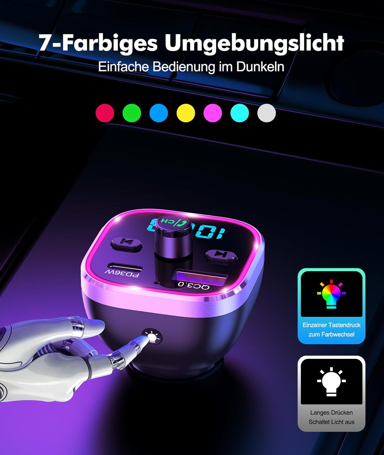 - Eintauchen in Atmosphärenbeleuchtung: Mit eingebauten 7-farbigen LED-Atmosphärenlichtern im Auto Bluetooth Adapter erhalten Sie nicht nur präzise Sichtbarkeit für mühelose und sichere Bedienung in der Nacht, sondern auch eine gemütliche