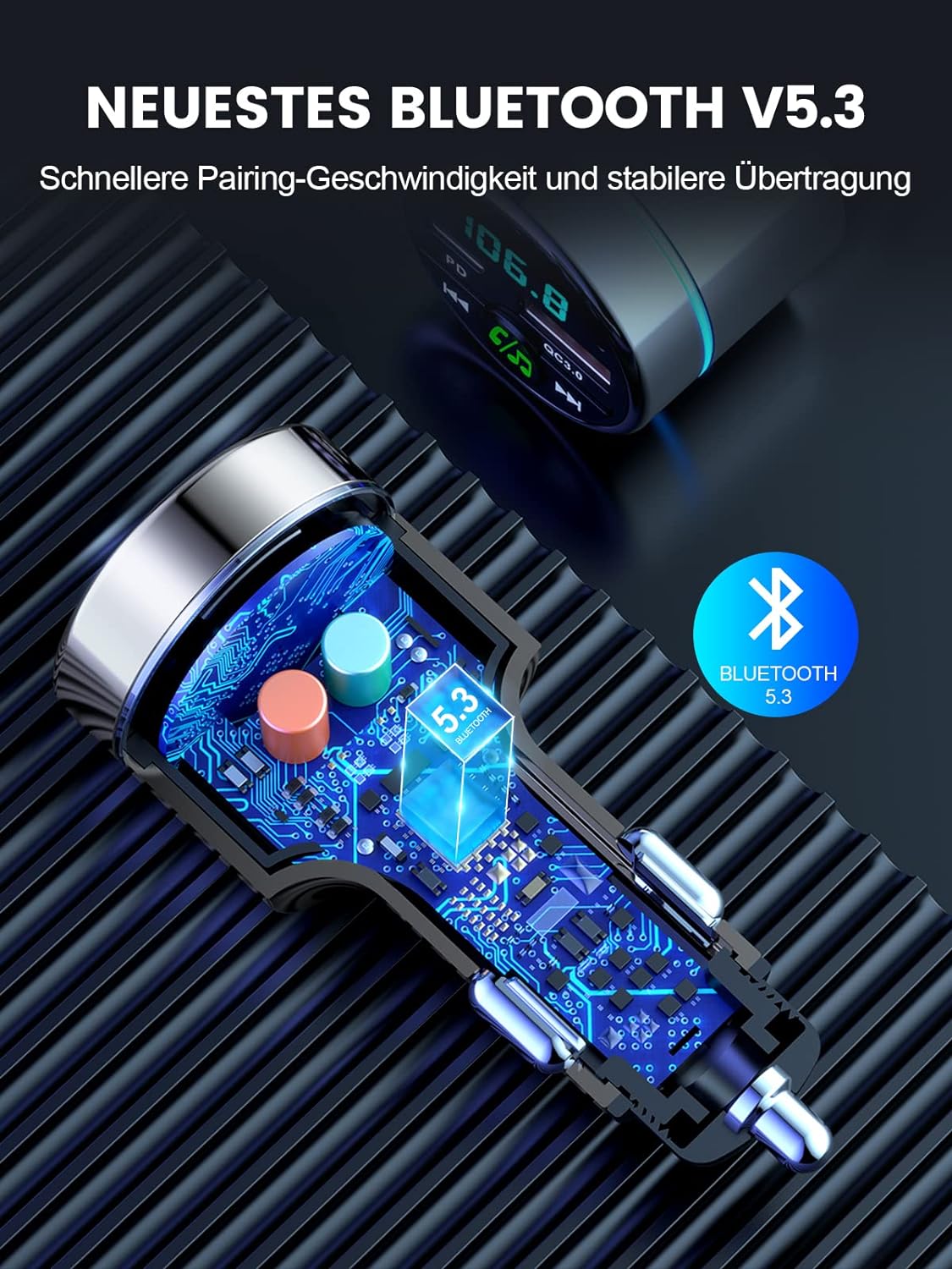 - 【KOMPAKT UND METALLGEHÄUSE】Mit seinem schlanken und attraktiven Unibody-Design passt dieser Transmitter für Auto Bluetooth perfekt in den Zigarettenanzünder und schafft so mehr Platz auf Ihrem Armaturenbrett. Er besteht vollständig aus einer