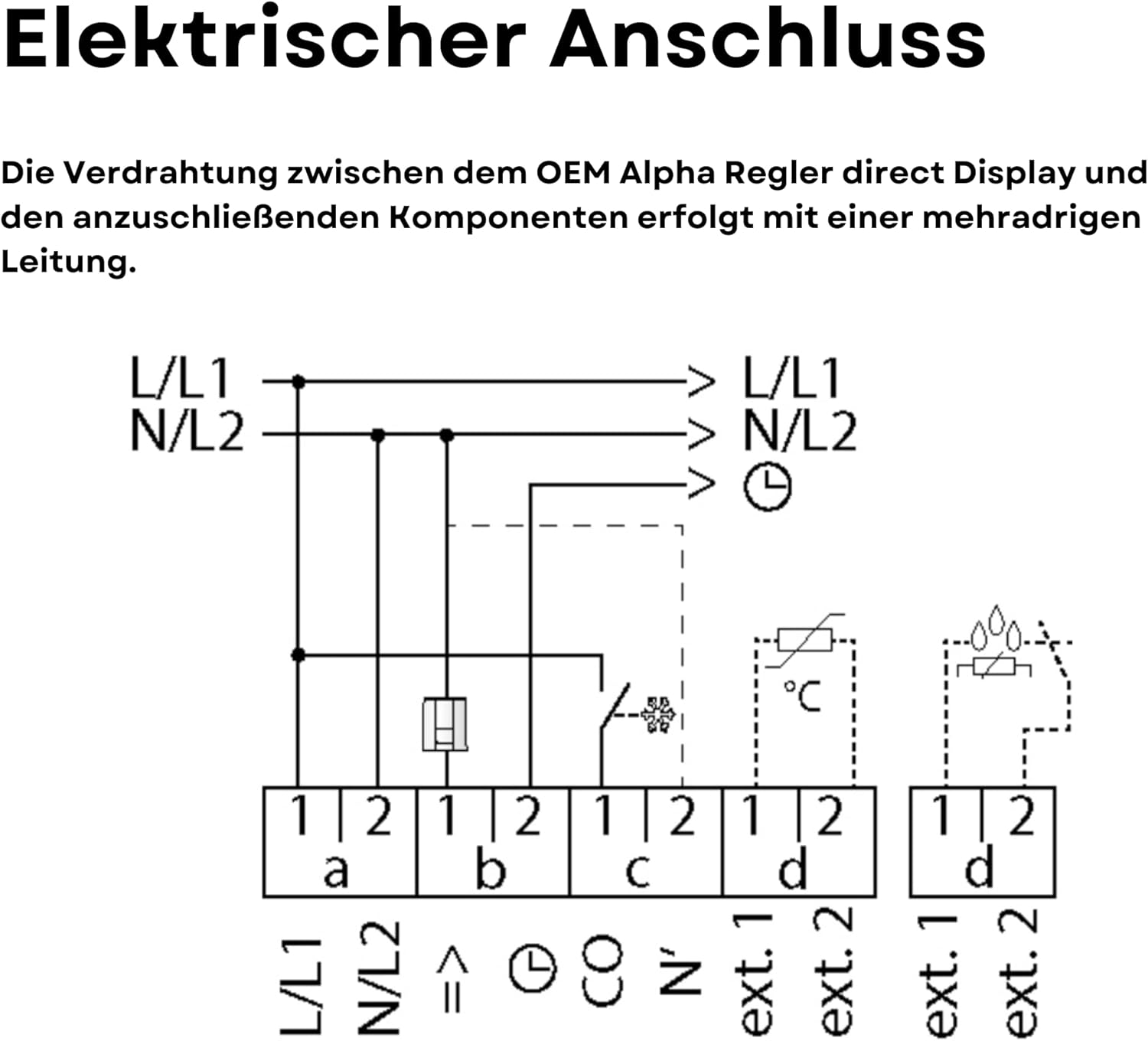 - Das Thermostat ermöglicht den Anschluss von bis zu fünf 230-V Stellantrieben über eine externe Klemme, sodass Sie auch grössere Räume oder mehrere Heizkreise steuern können. Zusätzlich bietet das Thermostat einen Anschluss für einen externen