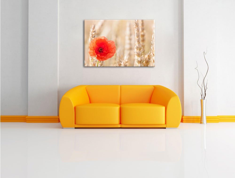 Mohnblume im Kornfeld, Format: 100x70 auf Leinwand, XXL riesige Bilder fertig gerahmt mit Keilrahmen