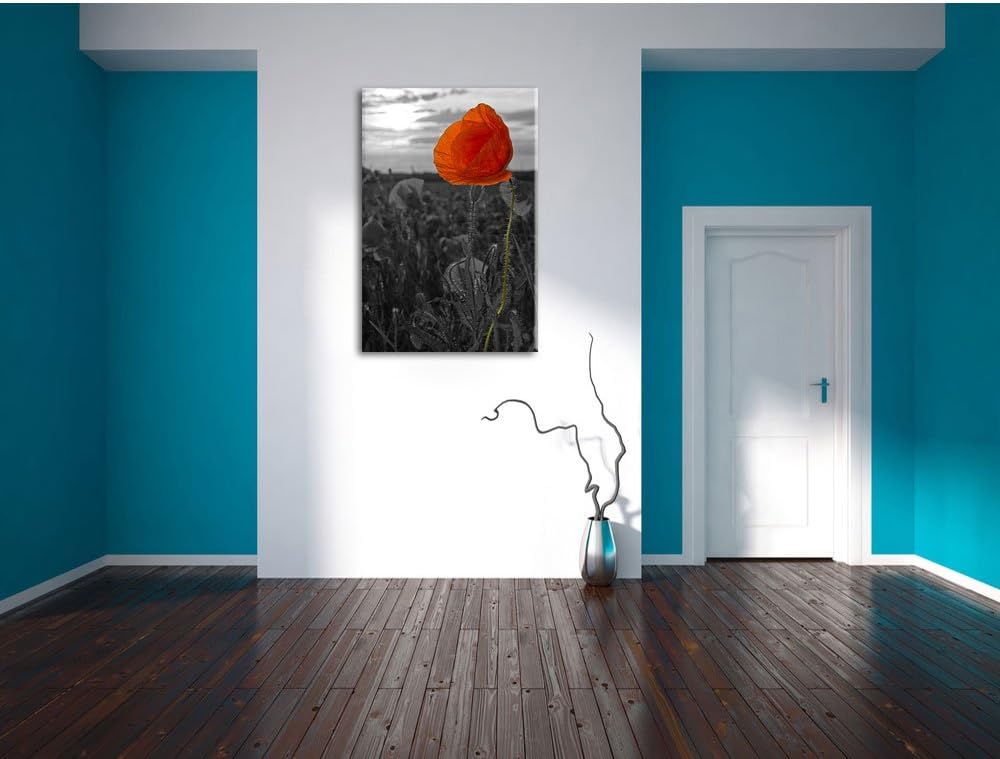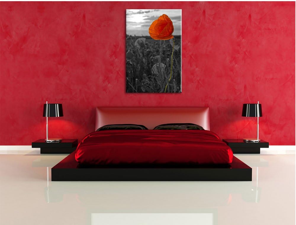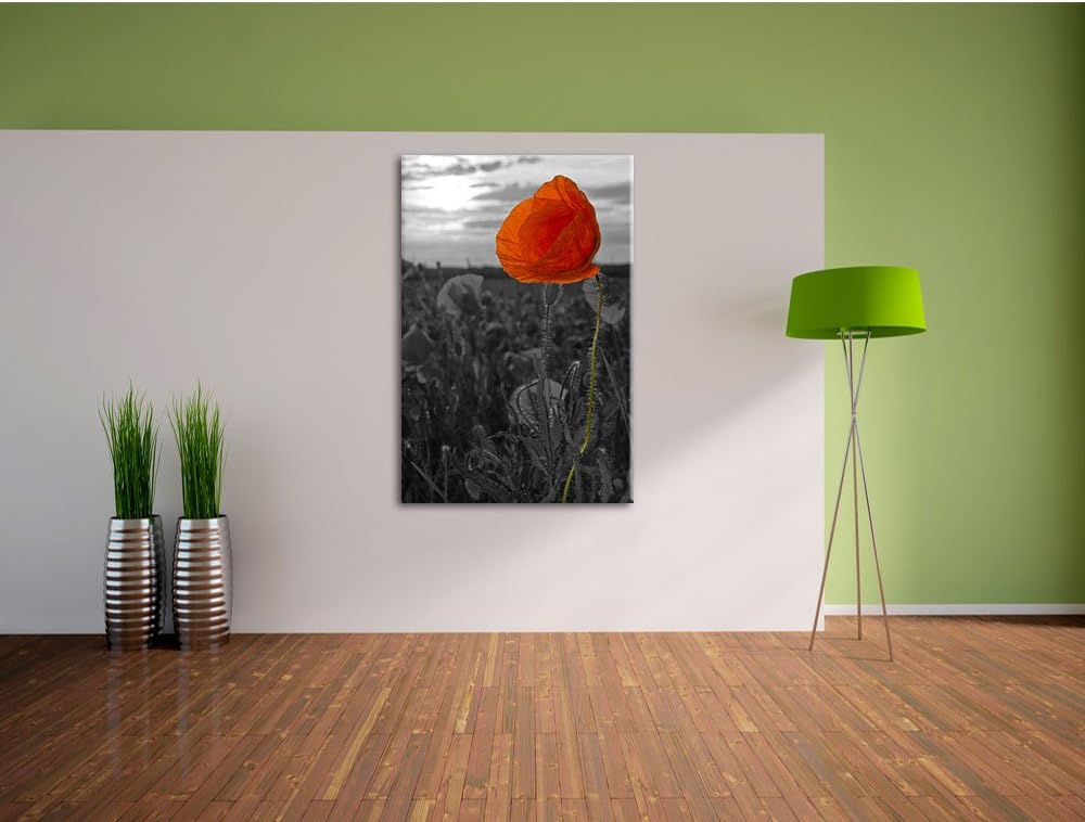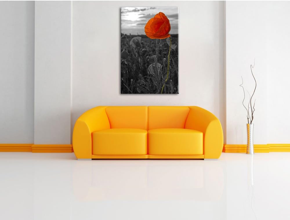 Mohnfeld B&W Detail, Format: 100x70 auf Leinwand, XXL riesige Bilder fertig gerahmt mit Keilrahmen,