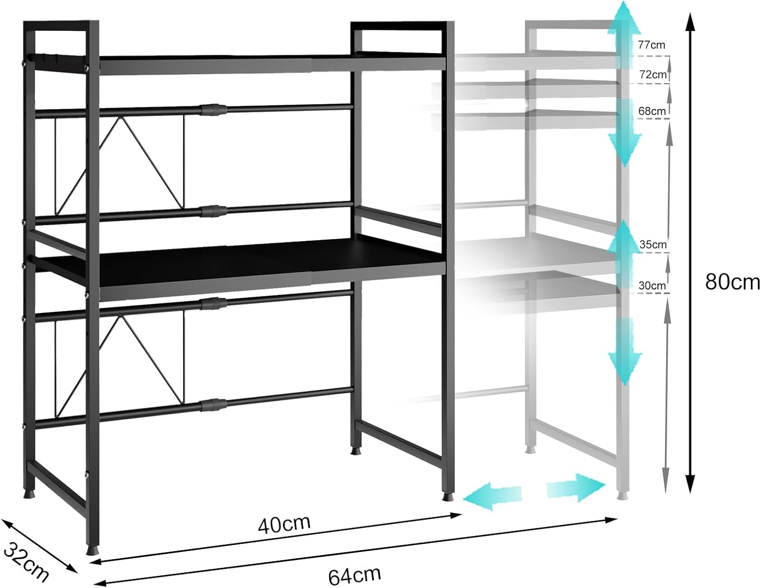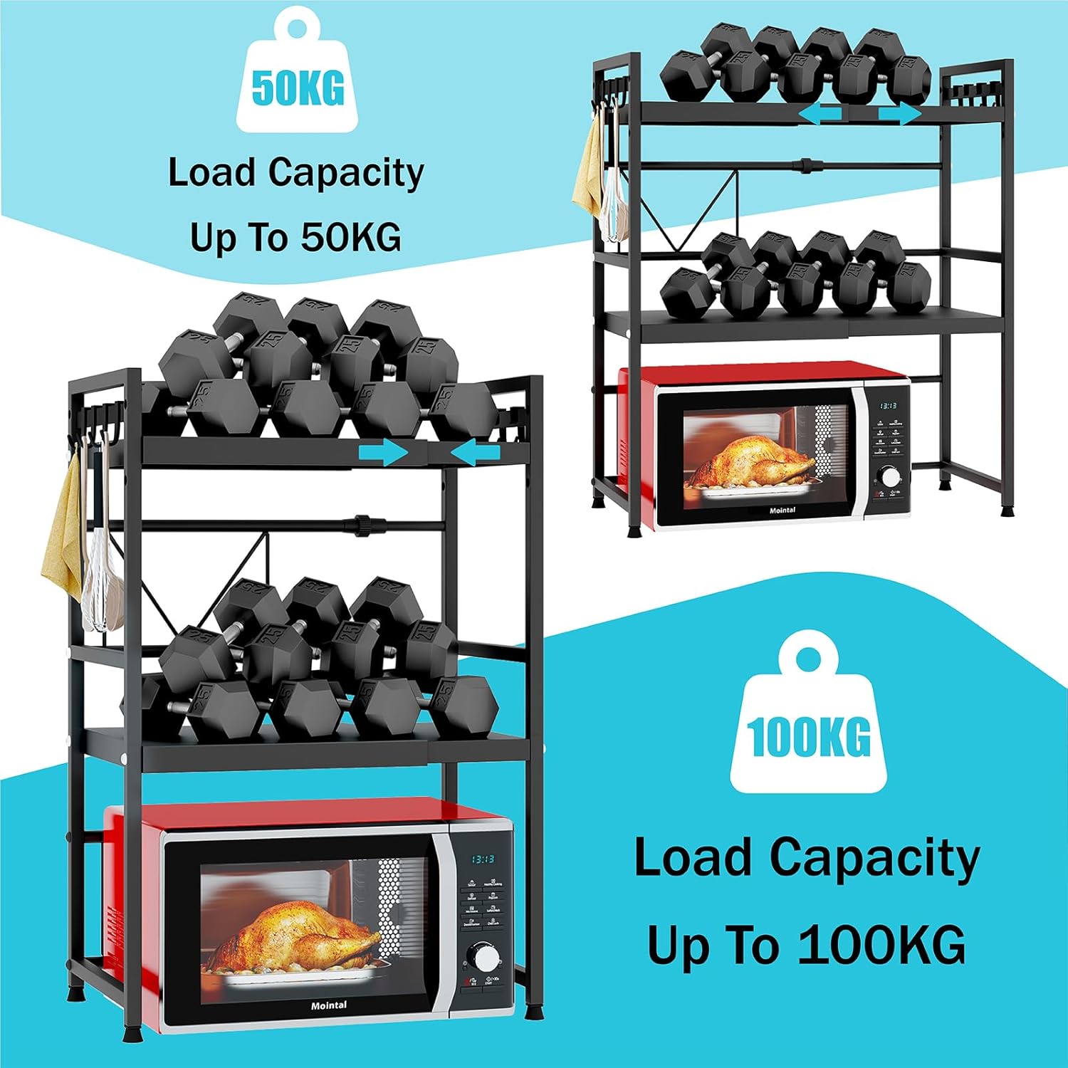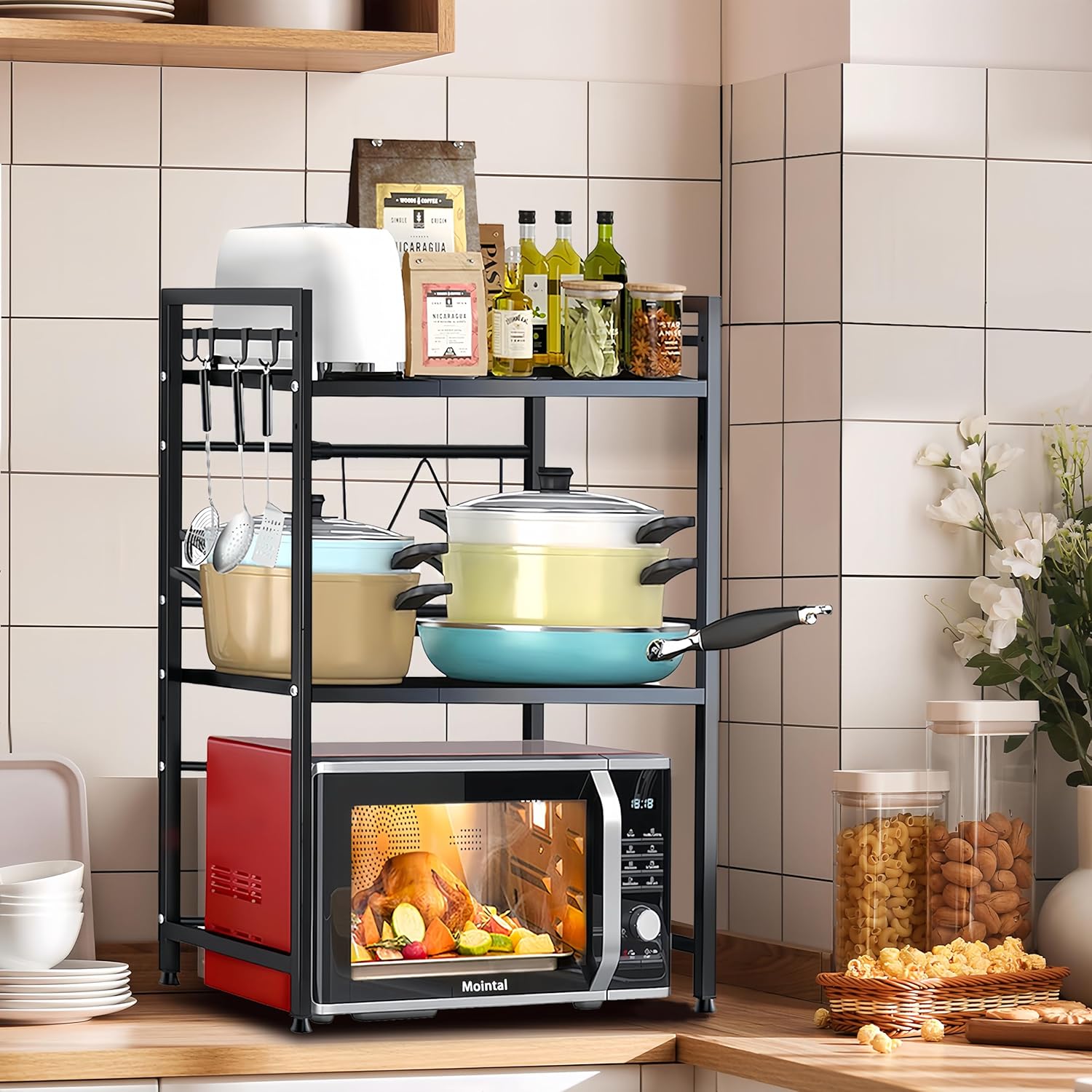 Mointal Erweiterbarer Mikrowellenregal, 3-Stufig Küchen Mikrowellenständer, Mikrowellenhalter aus Ko