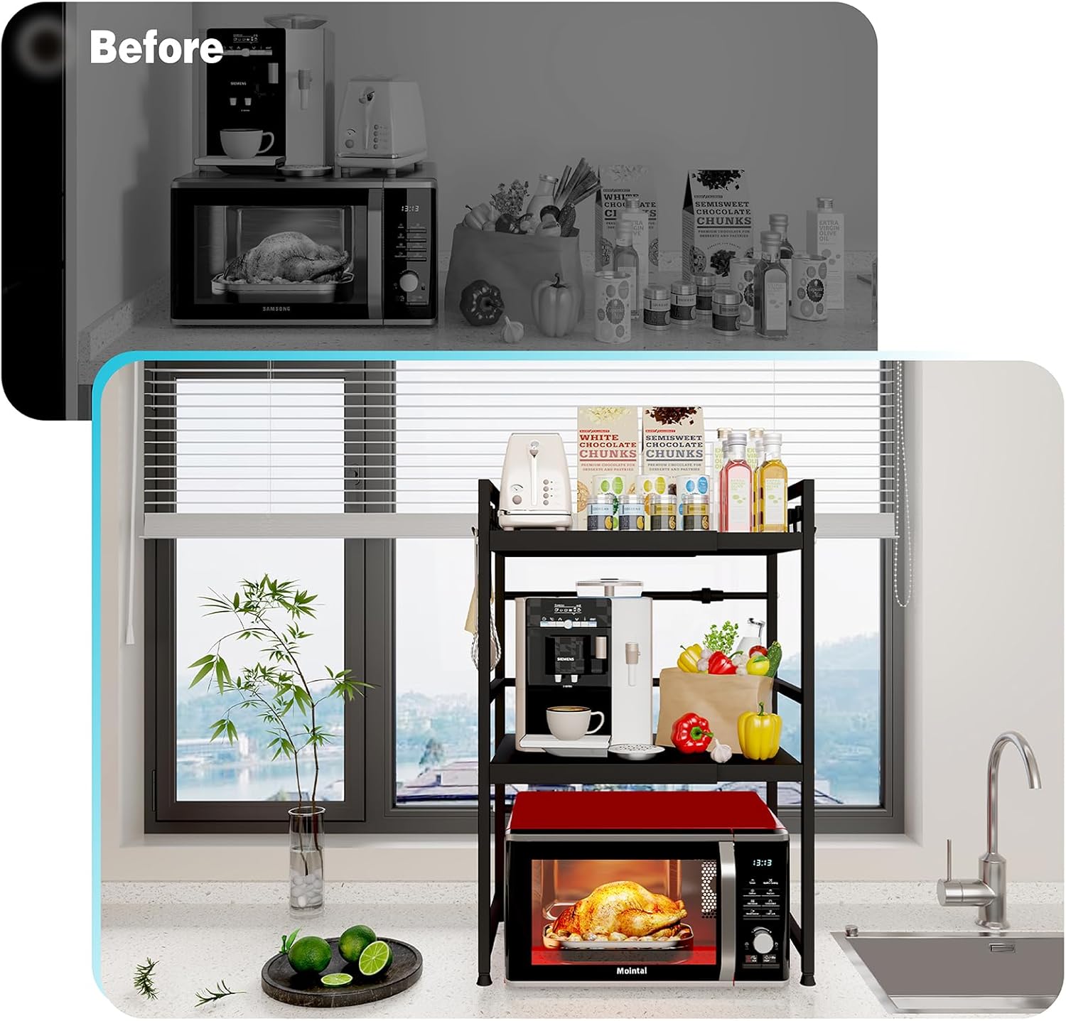 • ➡️【Verstellbare Grösse】Der Mointal Mikrowellenregal kann entsprechend Ihren Bedürfnissen in Länge und Höhe angepasst werden, sodass es für verschiedene Grössen von Mikrowellen und anderen Küchengeräten geeignet ist