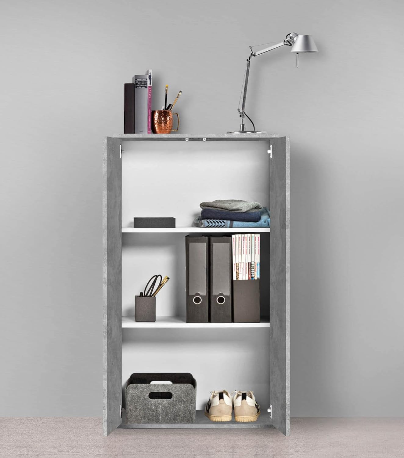 - MADE IN NRW! Der Büroschrank wird aus Spanplatte mit beständiger Beschichtung & Kunststoffgriffen in Deutschland produziert. Durch seine kompakten Masse 60cm/110cm/34cm (B/H/T) passt er in Arbeitszimmer, Büro, Schlafzimmer, Flur & Abstellraum.