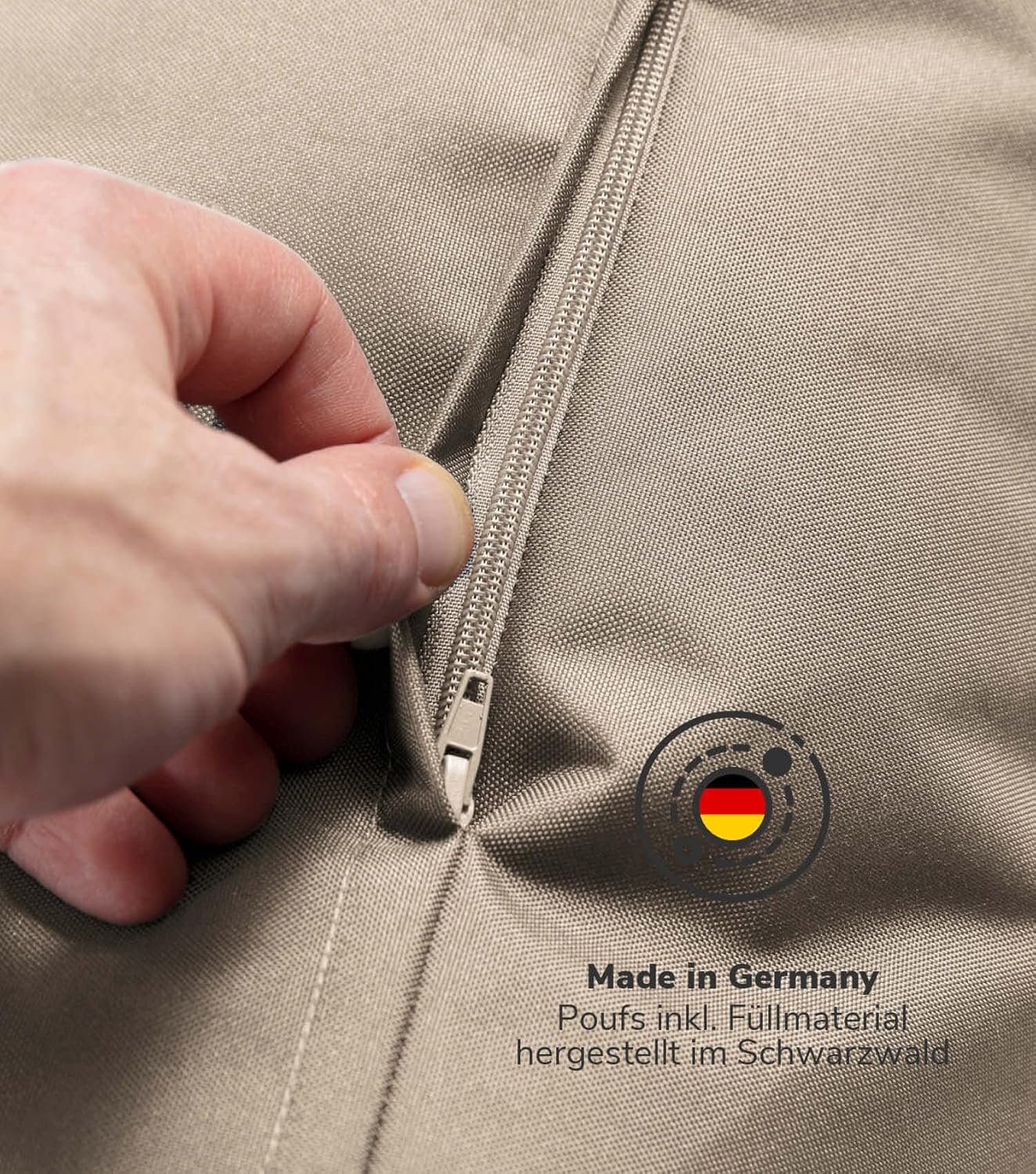 • MADE IN GERMANY! Von hochwertigen Stoffen über den EPS-Safety-Lock bis zur formbestädigen & Allergiker-freundlichen Füllung aus EPS-Granulat - unsere Indoor Poufs erfüllen höchste Qualitätsansprüche. Hergestellt im Schwarzwald.