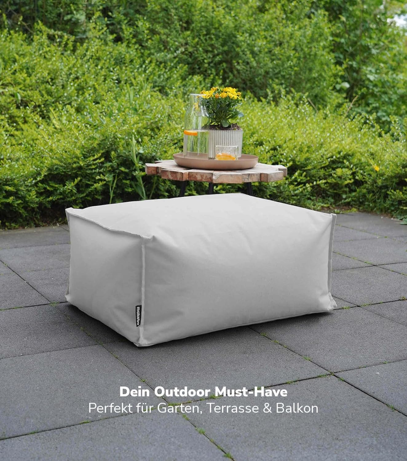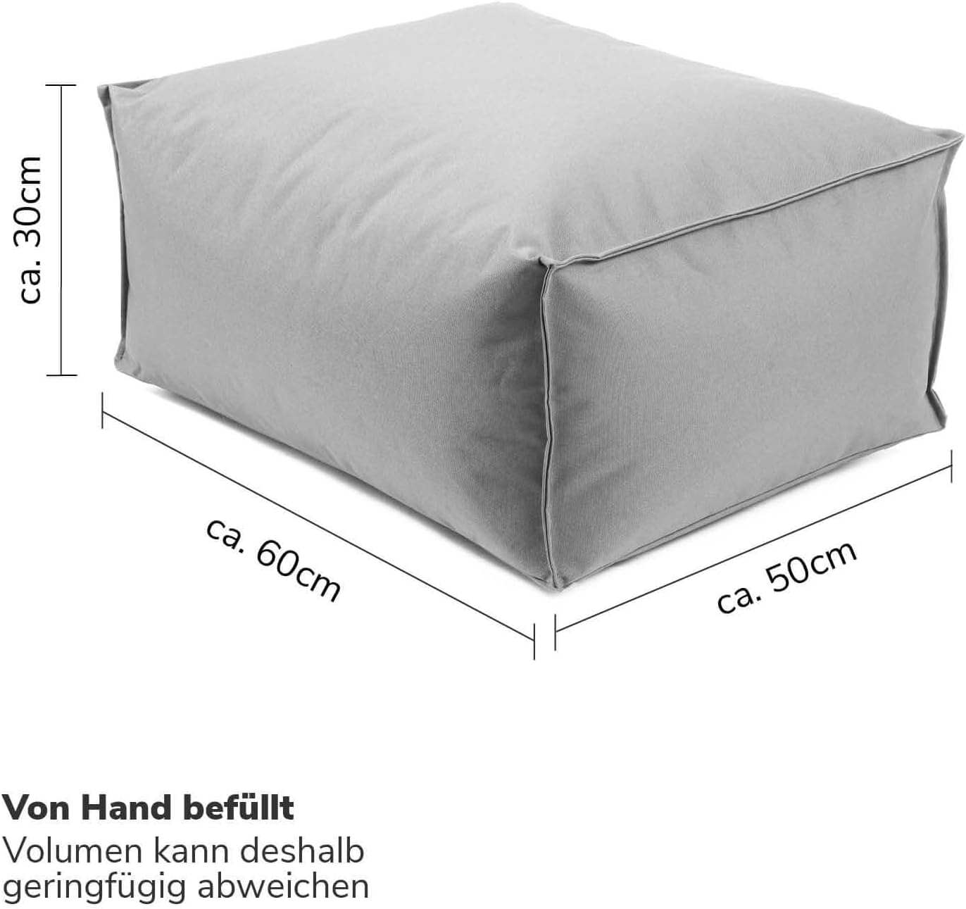 - FÜR DRINNEN & DRAUSSEN! Unser eckiger Sitzpouf ist dein Begleiter für gemütliche Stunden unter freiem Himmel und relaxte Momente Zuhause. Trotz wasserabweisendem Stoff sollte er jedoch nicht permanent auf nassem Grund oder in der Sonne stehen.