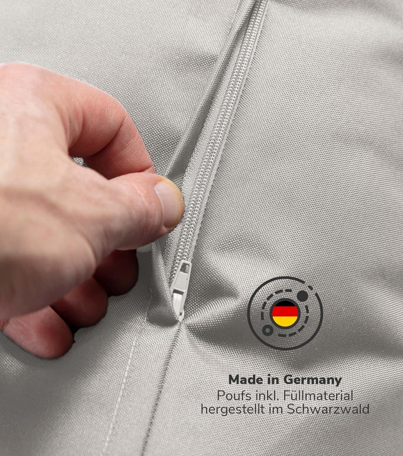- MADE IN GERMANY! Von hochwertigen Stoffen über den EPS-Safety-Lock bis zur formbesta?ndigen & Allergiker-freundlichen Füllung aus EPS-Granulat - unsere Indoor Poufs erfüllen höchste Qualitätsansprüche. Hergestellt im Schwarzwald.