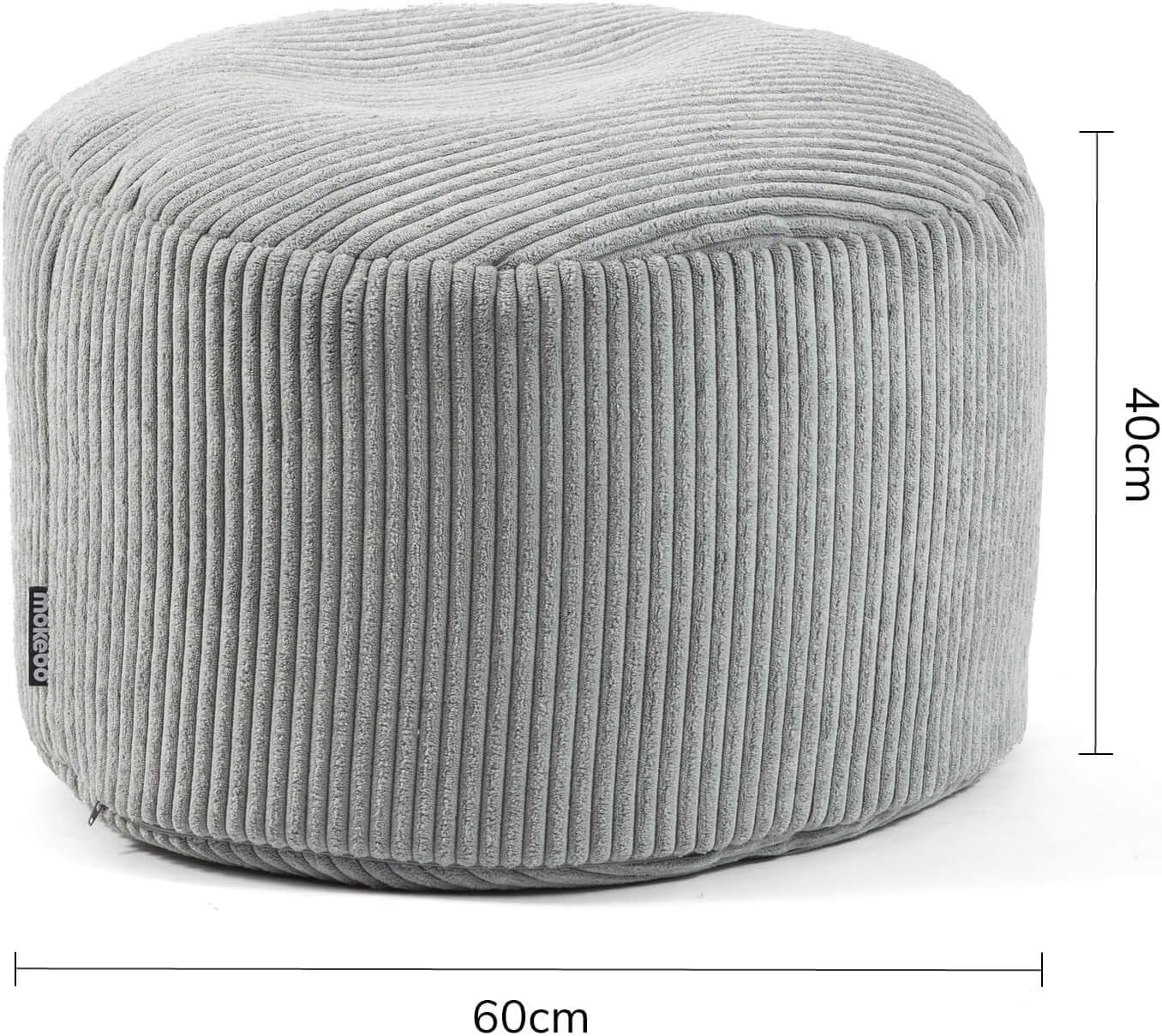 mokebo® Pouf, Hocker o. Sitzhocker aus Cord 40x60 cm 'Der Faule Lenz', Bodenkissen rund in Grau, Fus