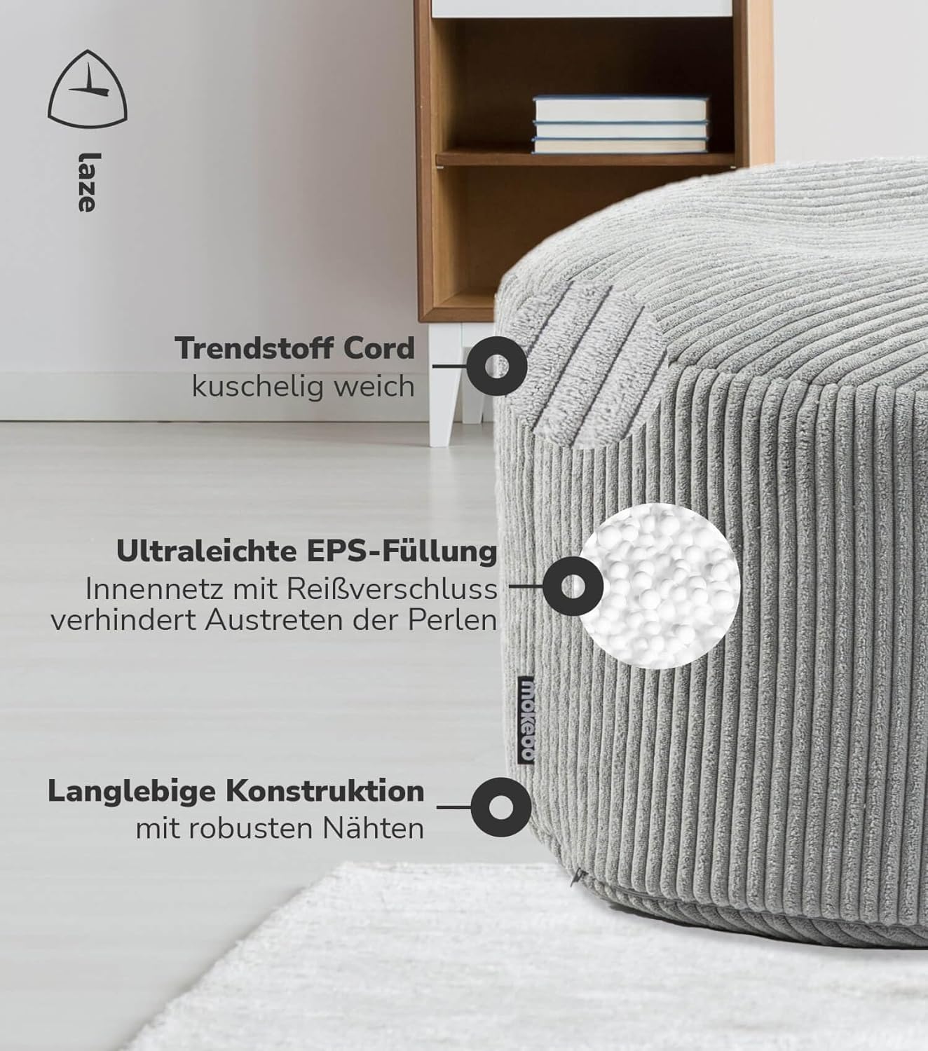 • MADE IN GERMANY! Von hochwertigen & weichen Stoffen über den EPS-Safety-Lock bis zur formbesta?ndigen & Allergiker-freundlichen Füllung aus EPS-Perlen - unsere Indoor Poufs erfüllen höchste Qualitätsansprüche. Hergestellt im Schwarzwald.
