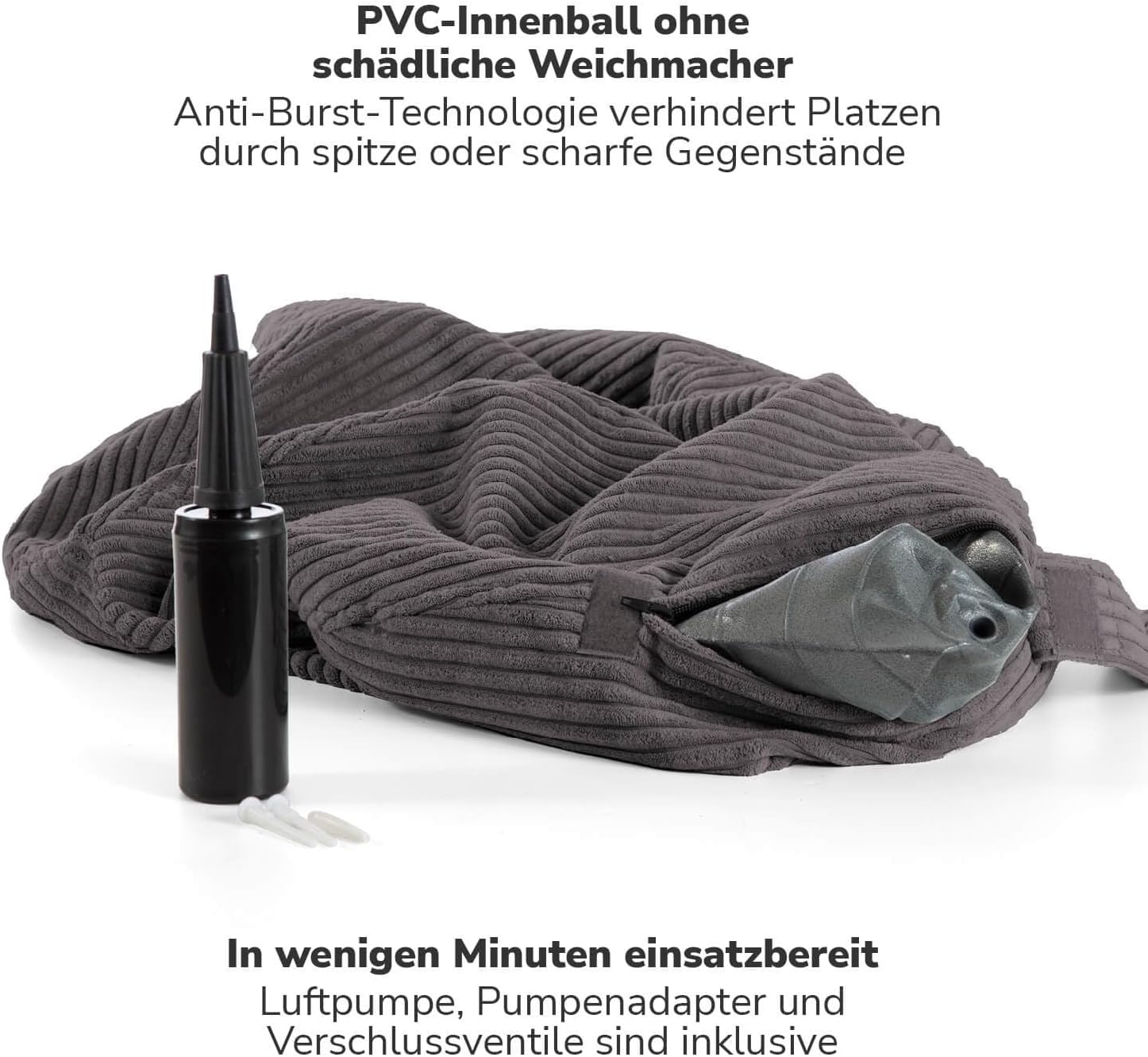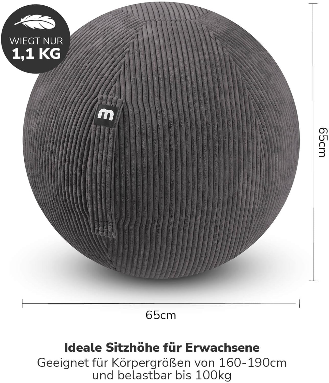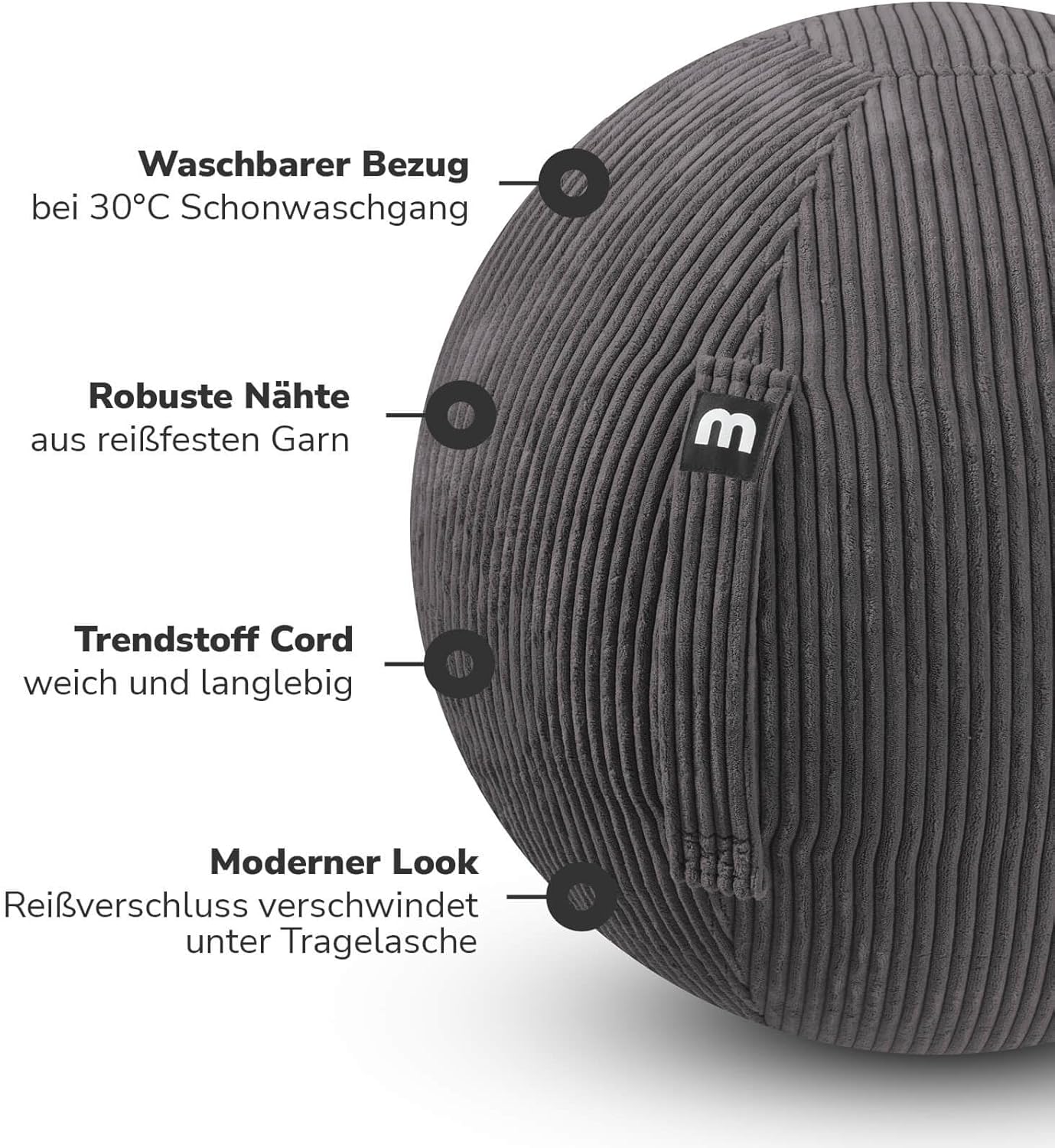 • STYLISCHE STOFFHÜLLE! Die stylische Stoffhülle mit Reissverschluss & Tragegriff gibt es in kuscheligem Trendstoff Cord und weichem Webstoff. Für lange Freude an deinem Sitzball sind die Nähte der Bezüge mit reissfestem Garn genäht.
