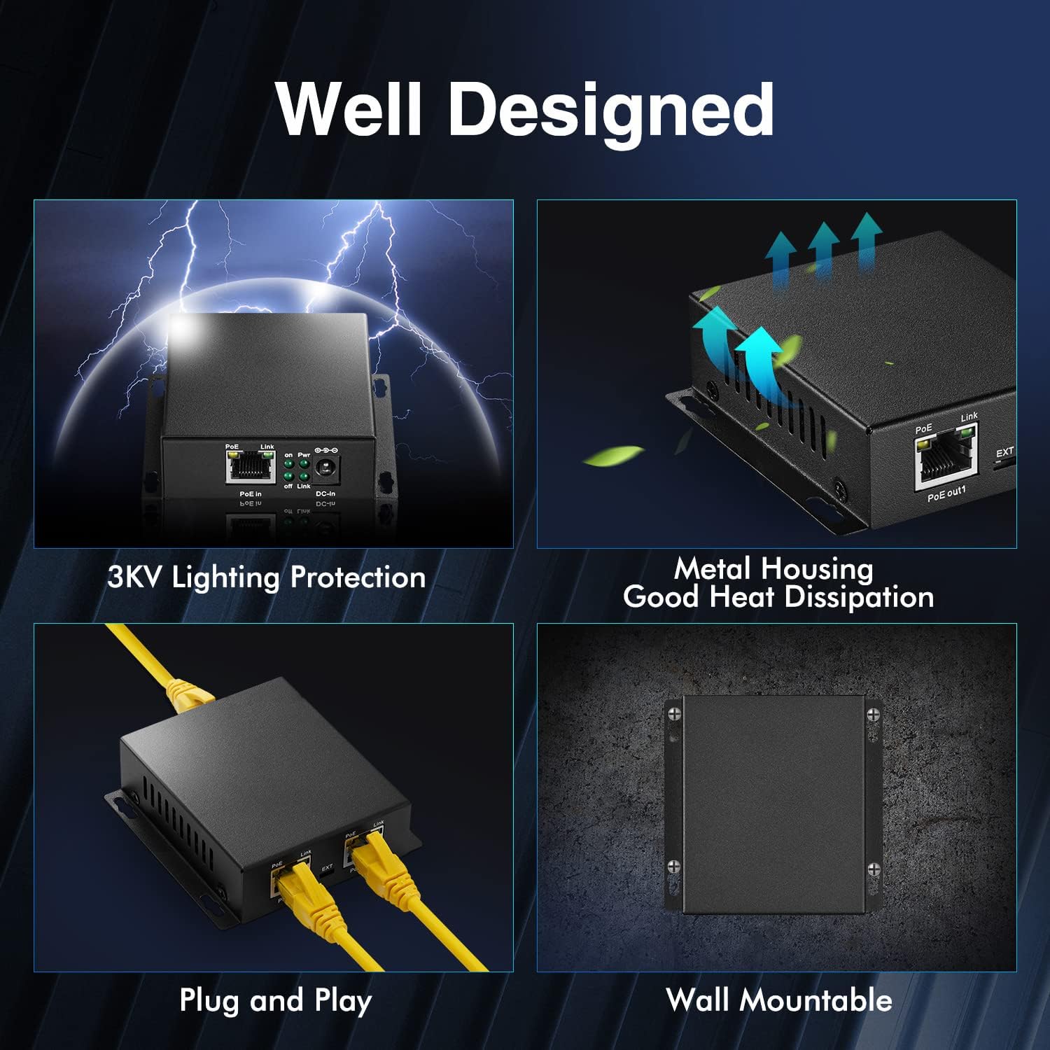 - Weit verbreitet: Metallkoffer, LED-Anzeige, Stützwandhalterung und Tischinstallation, kleine Grösse sparen Platz, passend für mehr Positionen, schliessen Sie poe AP, Kamera, Telefon und andere POE-Geräte an, erweitern Sie die Abdeckung des