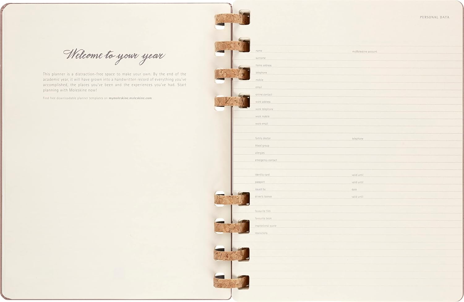 - Planer und Kalender mit abgerundeten Ecken, elastischem Verschluss, flexibler und robuster Spirale, Sticker + 3 Lesezeichen zum Personalisieren, Elfenbeinfarbenes 100 g/m² säurefreies Papier
