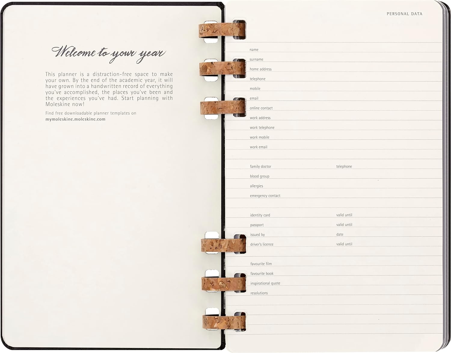 - Planer und Kalender mit abgerundeten Ecken, elastischem Verschluss, flexibler und robuster Spirale, Sticker + 3 Lesezeichen zum Personalisieren, Elfenbeinfarbenes 100 g/m² säurefreies Papier