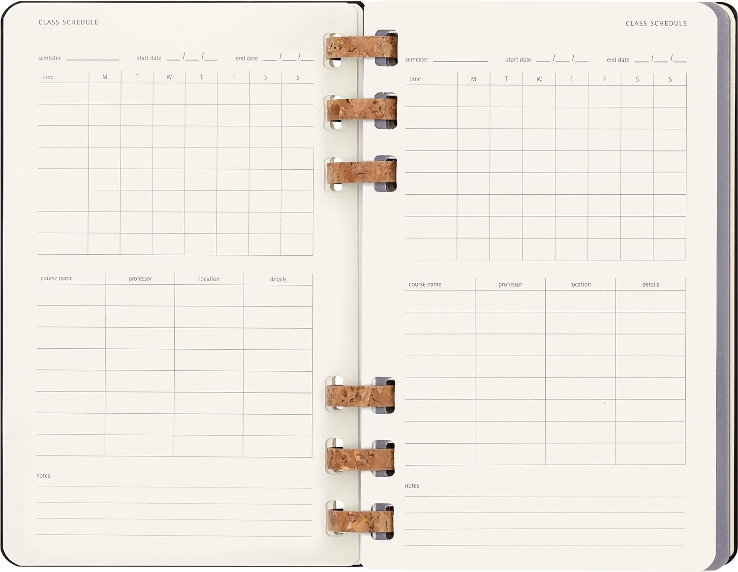 - Kalender mit doppelseitigen Monats und Wochenblättern, zum Eintragen und Planen von Terminen und Projekten. Mit grossem Klassenzimmer-Abschnitt für Stundenpläne, sowie Monats oder Jahresziele