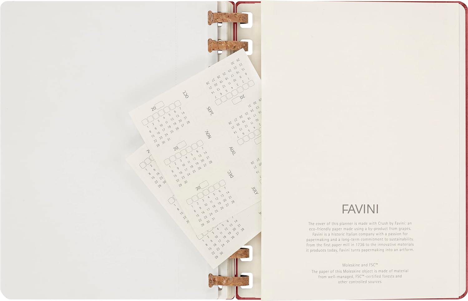 - Made in Italy: 15 Prozent des Einbands wird aus Kirschbaumabfällen hergestellt. Das seit 1736 bestehende norditalienische Unternehmen Favini ist weltweit führender Hersteller von natürlichen Materialien auf Faserbasis