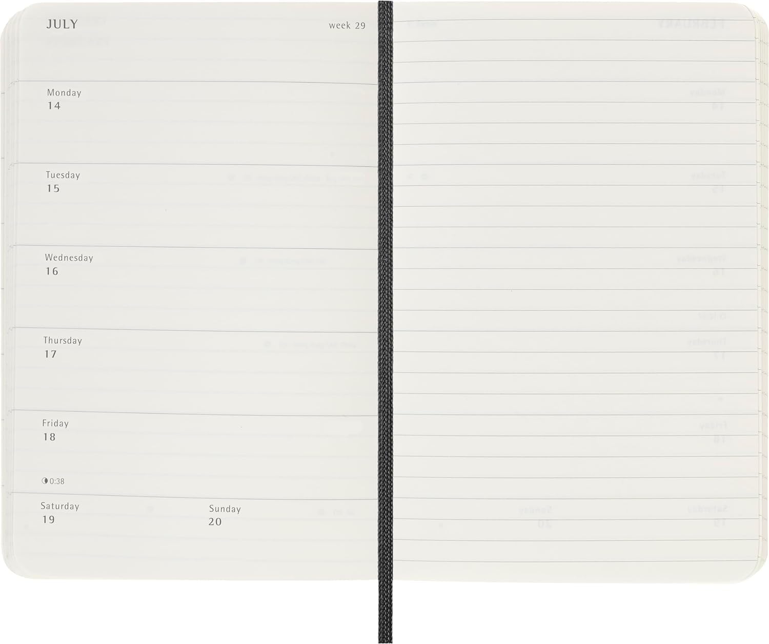 - Das Paket enthält einen Wochenplaner mit Notizbereich mit weichem Einband, erhältlich im Taschenformat 9x14, Farbe Schwarz