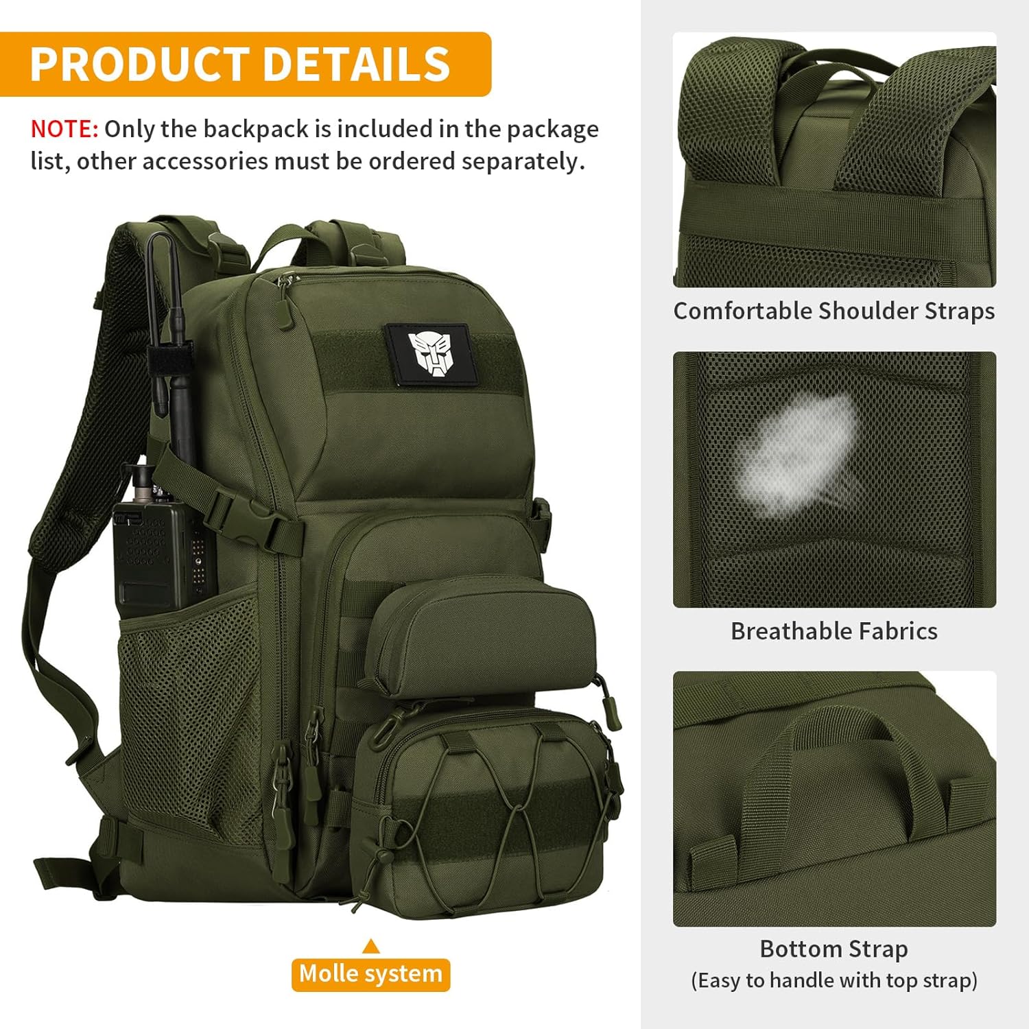 - 【Verwendung von Komfort und verstellbarem Hüftgurt】: Dieser Militärrucksack ist mit verstellbaren Hüft- und Schultergurten ausgestattet, die den Druck auf die gesamten Schultern und den Rücken verteilen können, um den Komfort zu erhöhen. Der