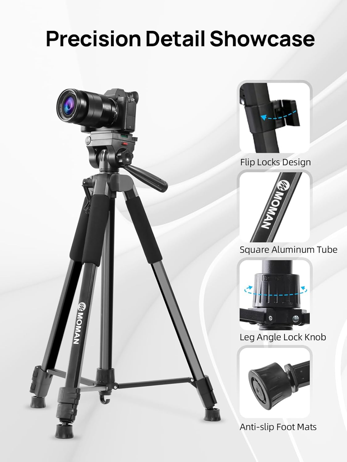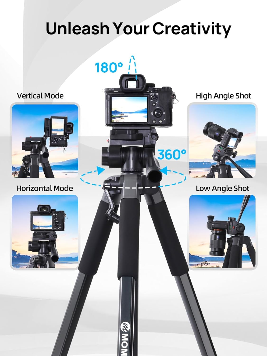 • 【Flexibler 3 Wege Panoramakopf】Moman Dreibein-Stative Ein professioneller 3-Wege-Kopf für horizontale 360°-Panorama-, 180°-Neige- und 90°-Vertikalaufnahmen ist im Lieferumfang enthalten. Der einfach zu installierende und abnehmbare Kopf erfüllt