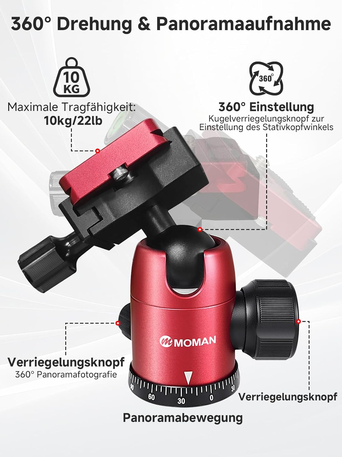 • 【10 kg Nutzlast vom Kugelkopf, 80 kg Nutzlast vom Stativ】Der Moman Kugelkopf kann bis zu 10 kg tragen wie DSLRs mit schwereren Objektiven und Zubehör. Der Moman Mini-Stativ ist eine robuste CNC-Aluminiumkonstruktion, die dennoch leicht und tragbar