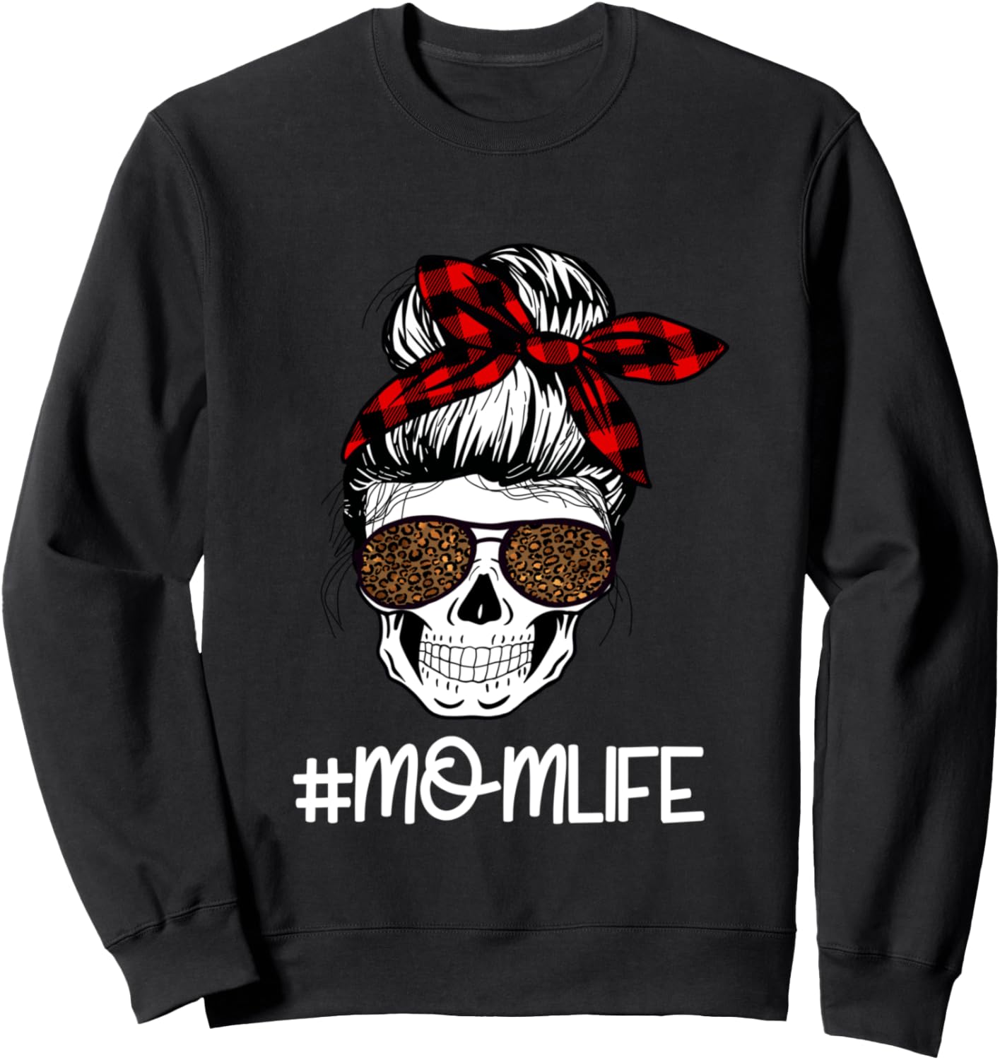 PRODUKTBESCHREIBUNGEN Mom Life Totenkopf Skelett Lady mit einem roten Bandana & Leopard Flieger-Sonnenbrille. Geschenk für die coole Mutter in Ihrem Leben.