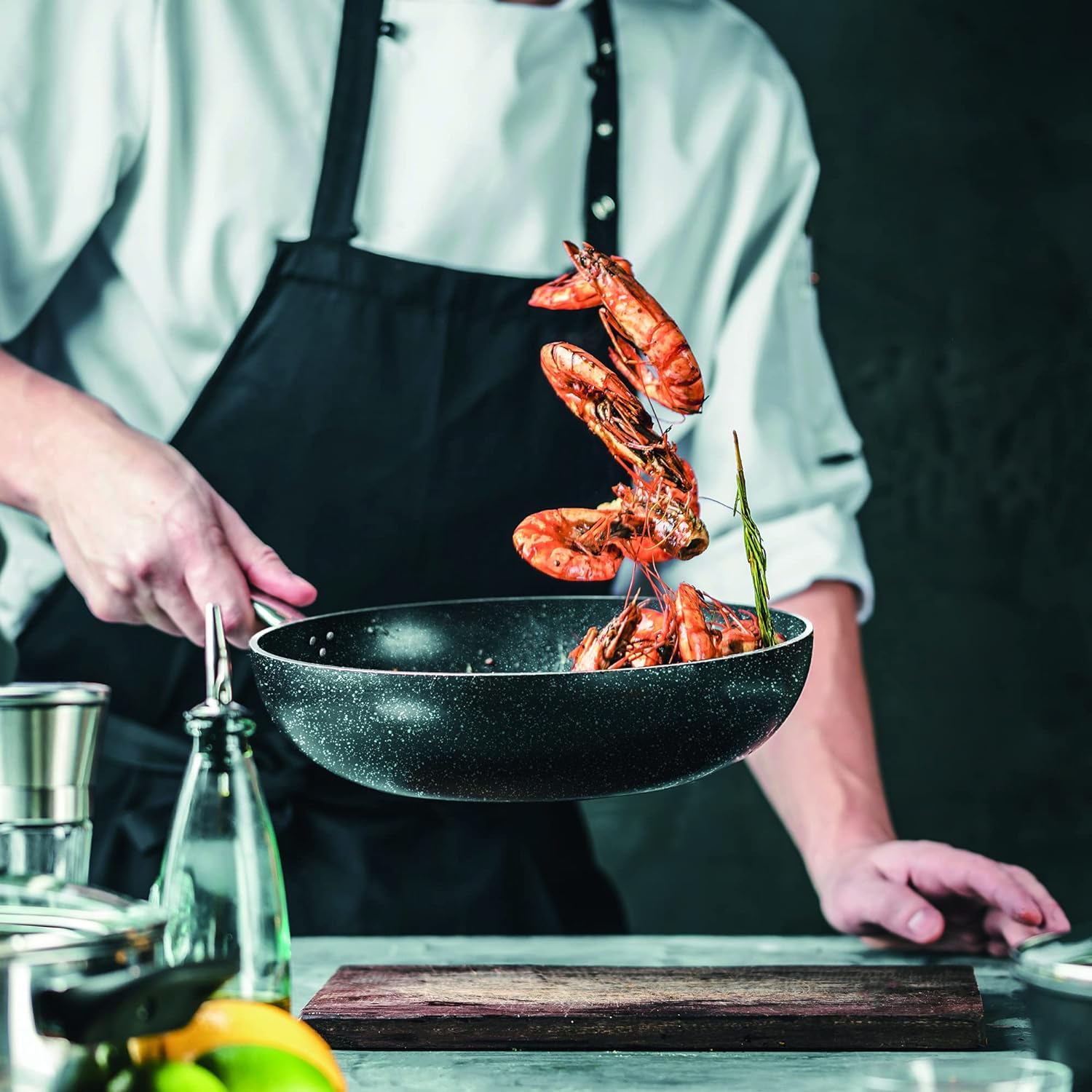• Korpus aus lebensmittelechtem Aluminium mit hoher Dicke für eine optimale Wärmeverteilung. Antihaftbeschichtung in Steinoptik, leicht zu reinigen. Griffe aus Edelstahl