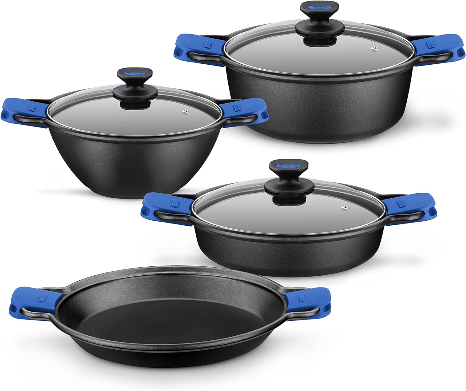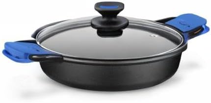 • Alu-Kokillen-Guss für Körper, Deckel aus Glas und Silikon termoresitente für die Griffe.