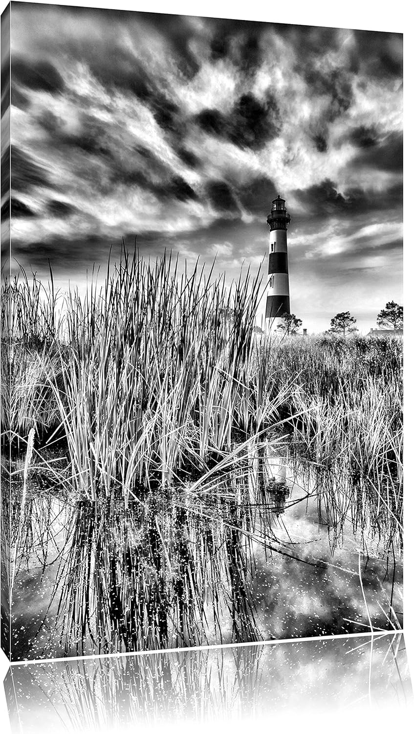 Monocrome, Leuchtturm, Format: 100x70 auf Leinwand, XXL riesige Bilder fertig gerahmt mit Keilrahmen