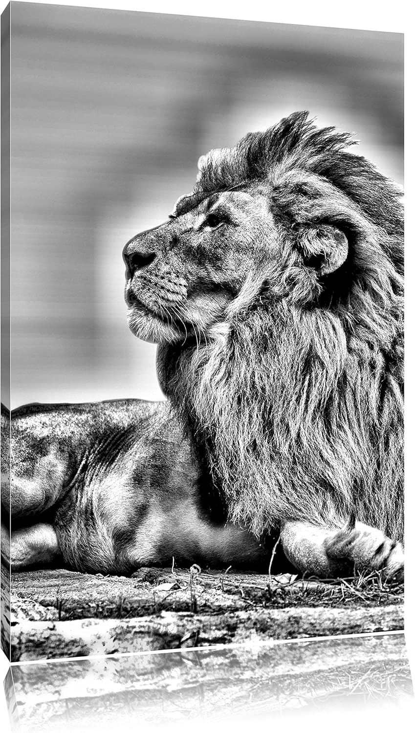 Monocrome, liegender Löwe, Format: 100x70 auf Leinwand, XXL riesige Bilder fertig gerahmt mit Keilra