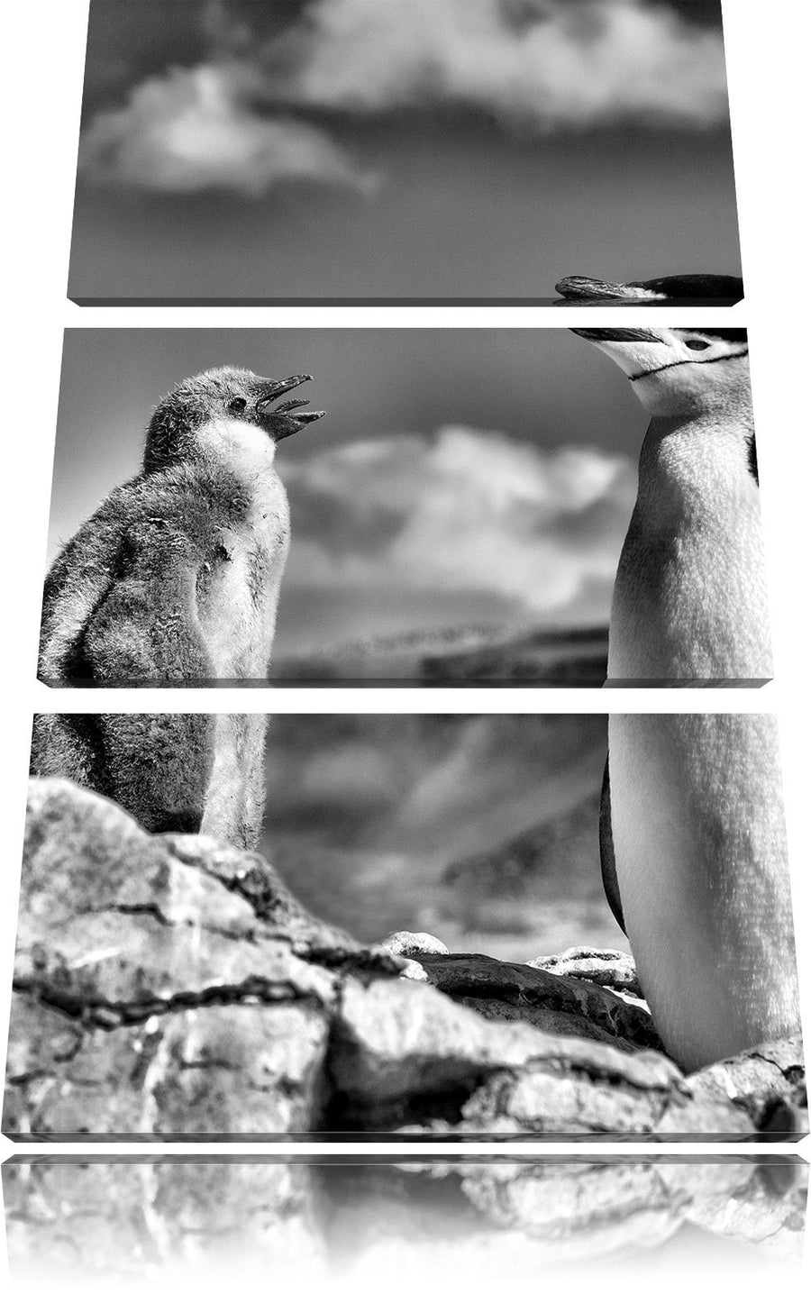 Monocrome, Pinguin mit süssen Küken 3-Teiler Leinwandbild 120x80 Bild auf Leinwand