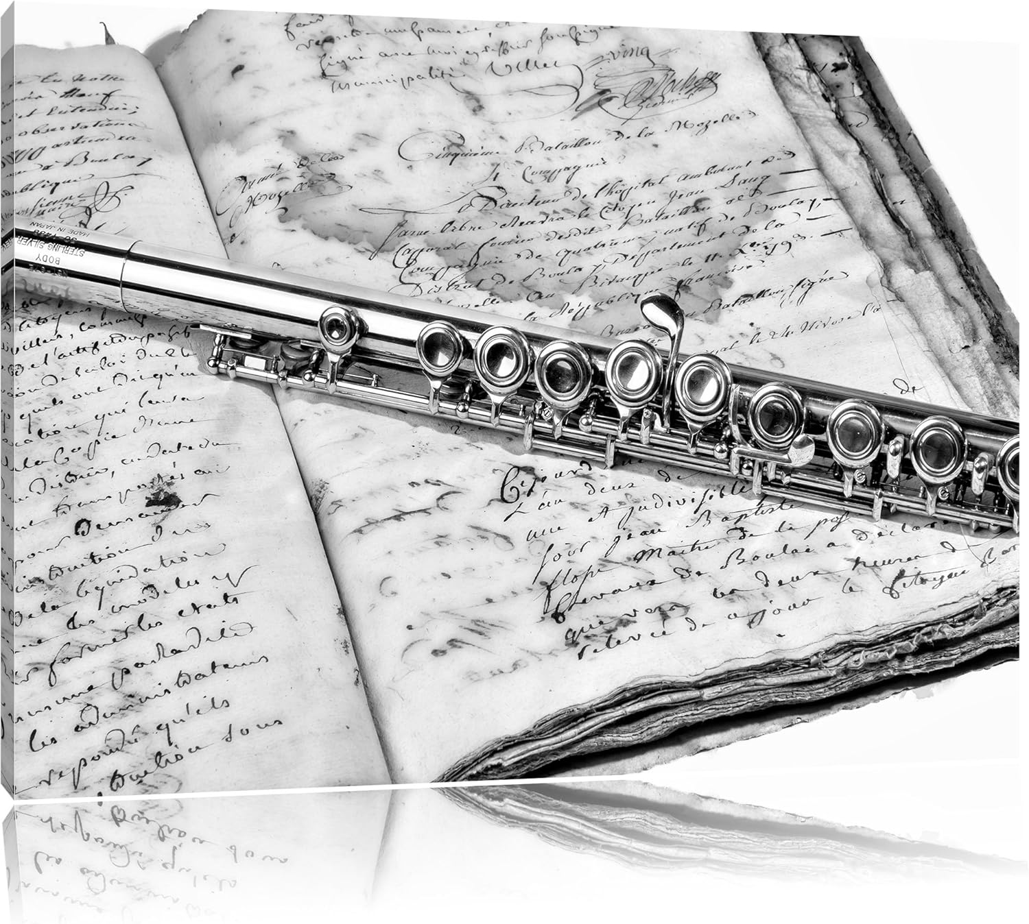 Monocrome, Querflöte, Format: 100x70 auf Leinwand, XXL riesige Bilder fertig gerahmt mit Keilrahmen,