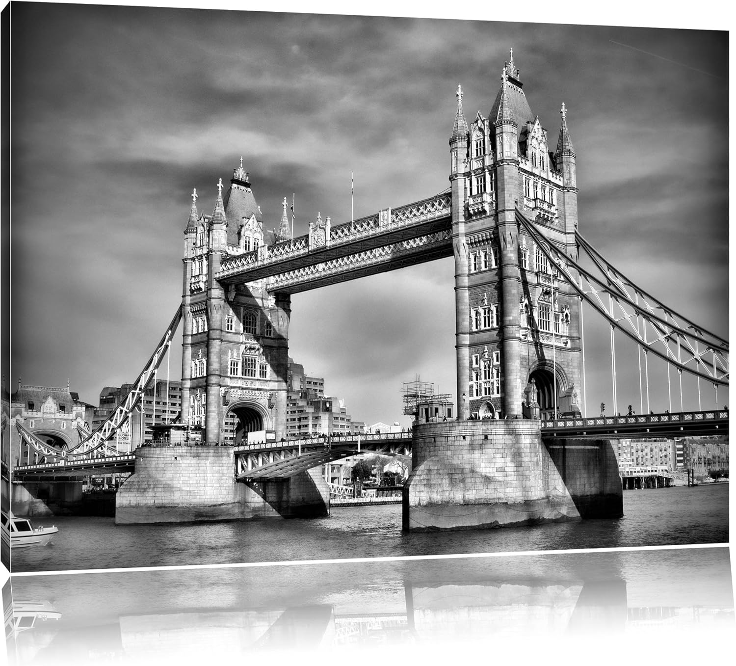 Monocrome, Tower Bridge, Format: 100x70 auf Leinwand, XXL riesige Bilder fertig gerahmt mit Keilrahm