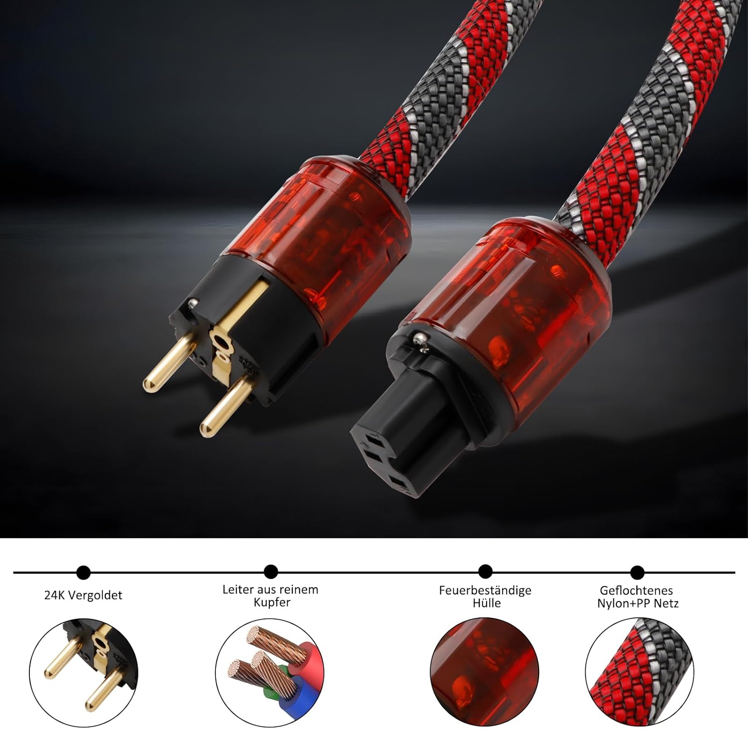 - Audiosystem verbessern: Audiophiles Stromkabel, reduziert Geräusche erheblich und verbessert das gesamte Audiosystem mit grösserer Dynamik.