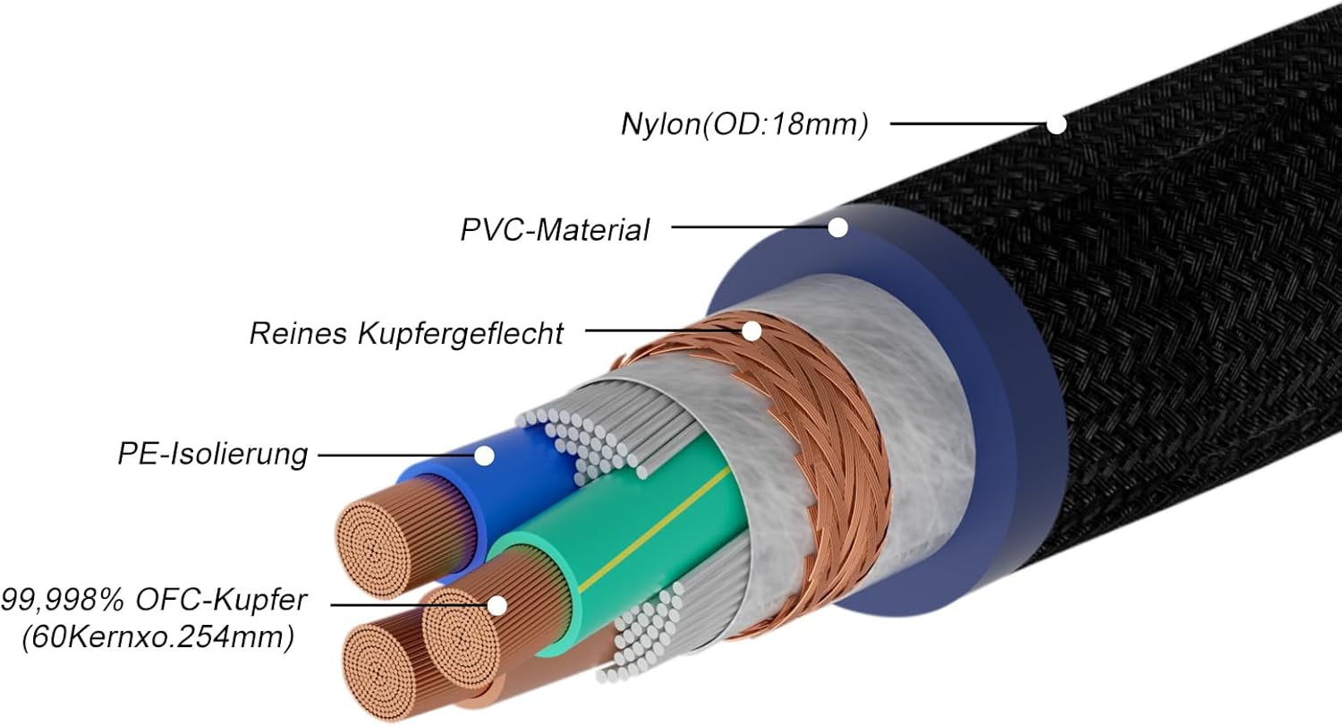 - Audiosystem verbessern: Audiophiles Stromkabel, reduziert Geräusche erheblich und verbessert das gesamte Audiosystem mit grösserer Dynamik.