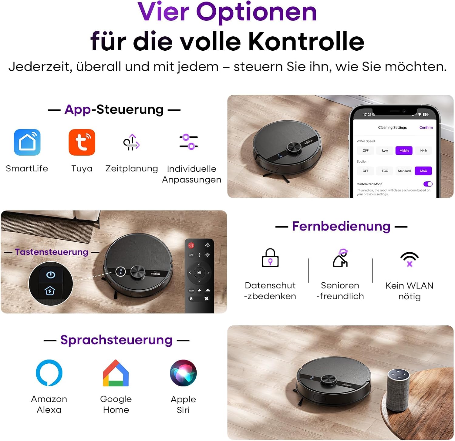 - ๐น๏ธ ๐๐ง๐ญ๐๐ฅ๐ฅ๐ข๐ ๐๐ง๐ญ๐ ๐๐ญ๐๐ฎ๐๐ซ๐ฎ๐ง๐ :Saugroboter mit Wischfunktion รber die App-Steuerung (kompatibel Smart-Life APP) kรถnnen Sie den Reinigungssequenz und die Reinigungszeit des Roboters