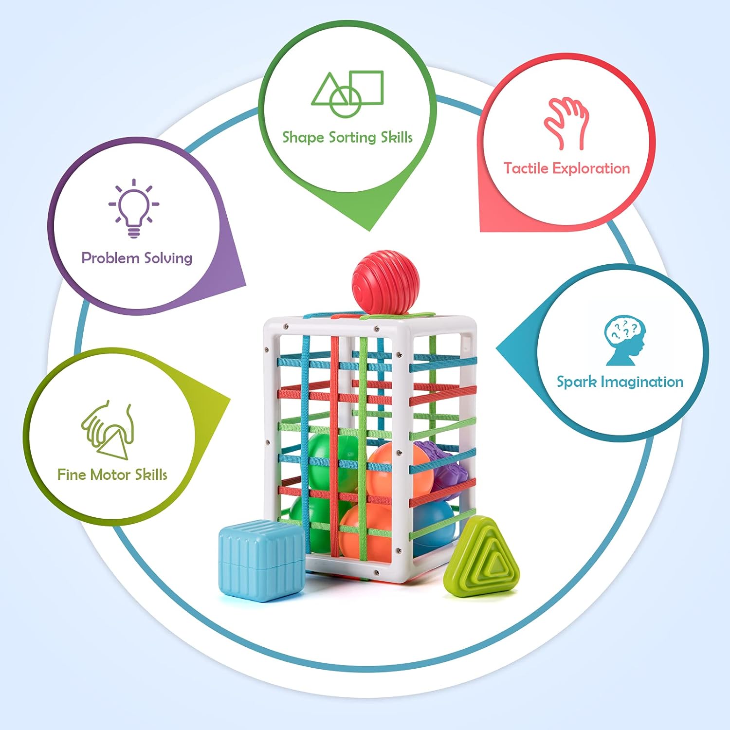 - đ ăBaby Montessori Formensortier Spielzeugă:Dieses einzigartige Formsortierspielzeug bietet Ihrem Baby ein neuartiges sensorisches Erkundungserlebnis. Das Baby schiebt die Blöcke durch die GummibĂ€nder, um sinnvolle Formen zu bilden. Ausserdem