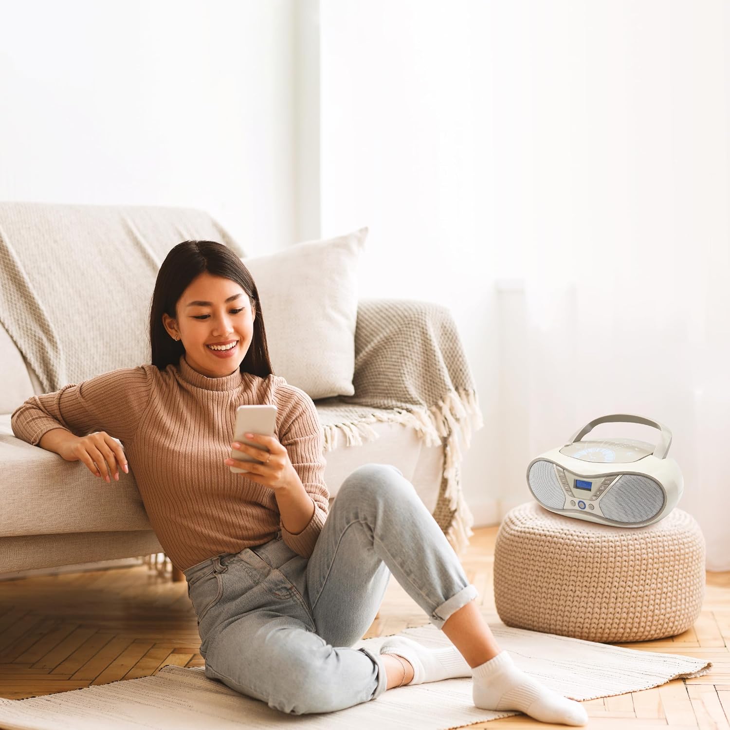 - Beispiellose Vielfalt des Hörens – Spielen Sie eine Vielzahl von Formaten: CD, CD-R, CD-RW, CD-MP3; klingen Sie mit Ihrem Lieblings-FM-Sender oder schliessen Sie einen USB-Stick an, um Ihre Wiedergabelisten zu hören.