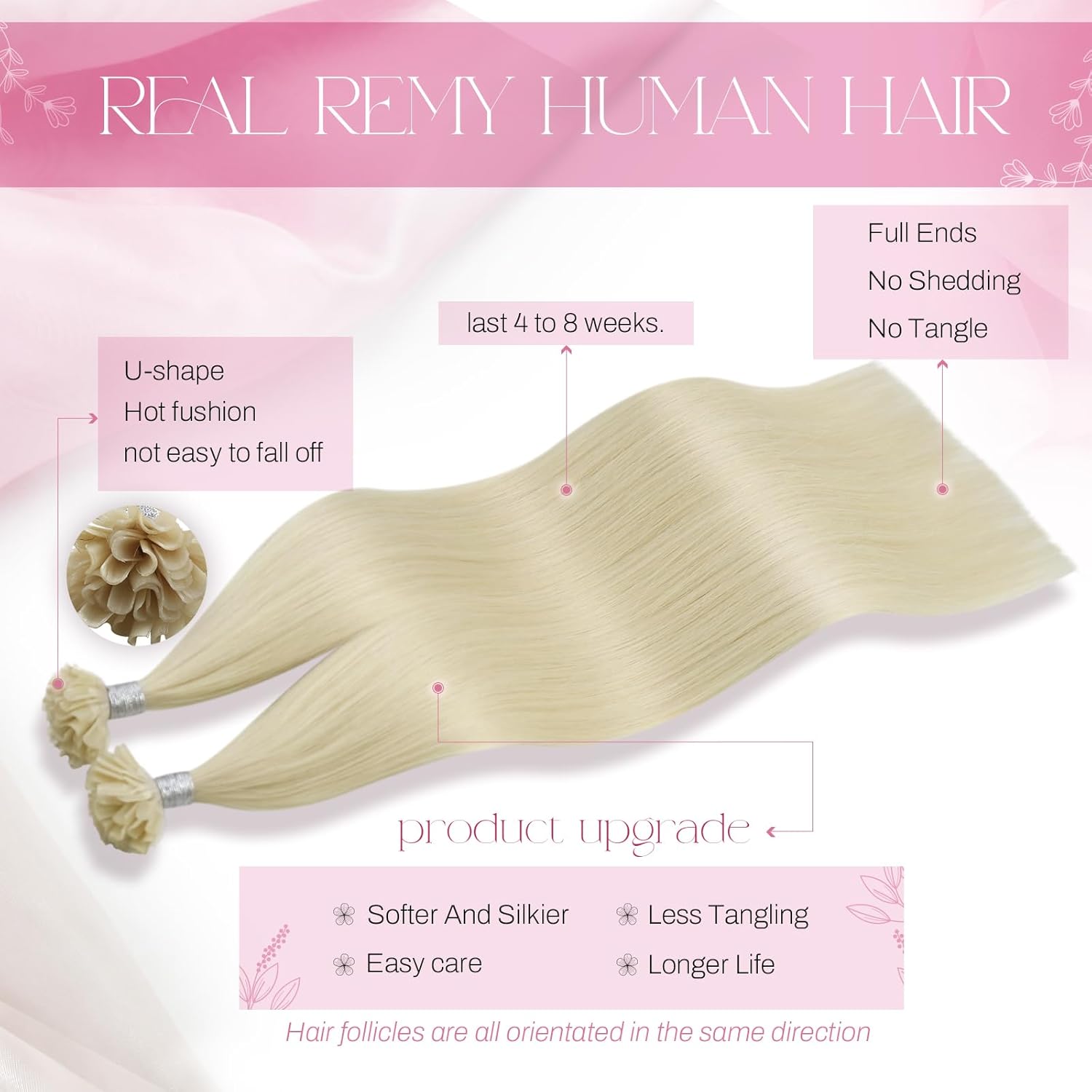 Moresoo Extensions Echthaar Bondings Blond 1g Remy Keratin Echthaar Bondings Extensions U Tip Platin