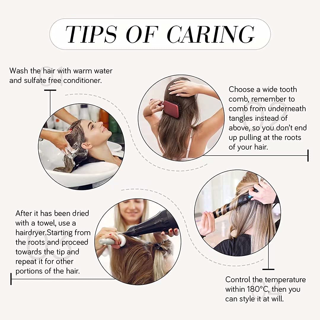 - 【Über Pflege】: Bitte Waschen Sie Das Haar Mit Einem Milden Shampoo Und Lassen Sie Es Natürlich Trocknen. Da Haarverlängerungen Keine Nährstoffe Wie Unser Eigenes Haar Von Uns Selbst Aufnehmen Können, Ist Die Tägliche Pflege Wichtig: Verwenden