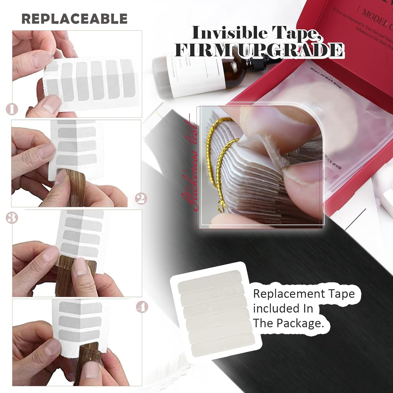 - 【Mühelose Anwendung und Pflege】: Das Anbringen dieser Erweiterungen ist ein Kinderspiel. Befolgen Sie einfach unsere benutzerfreundlichen Anweisungen für Tape-In und Bonding-Optionen. Um die langanhaltende Attraktivität zu gewährleisten, bürsten