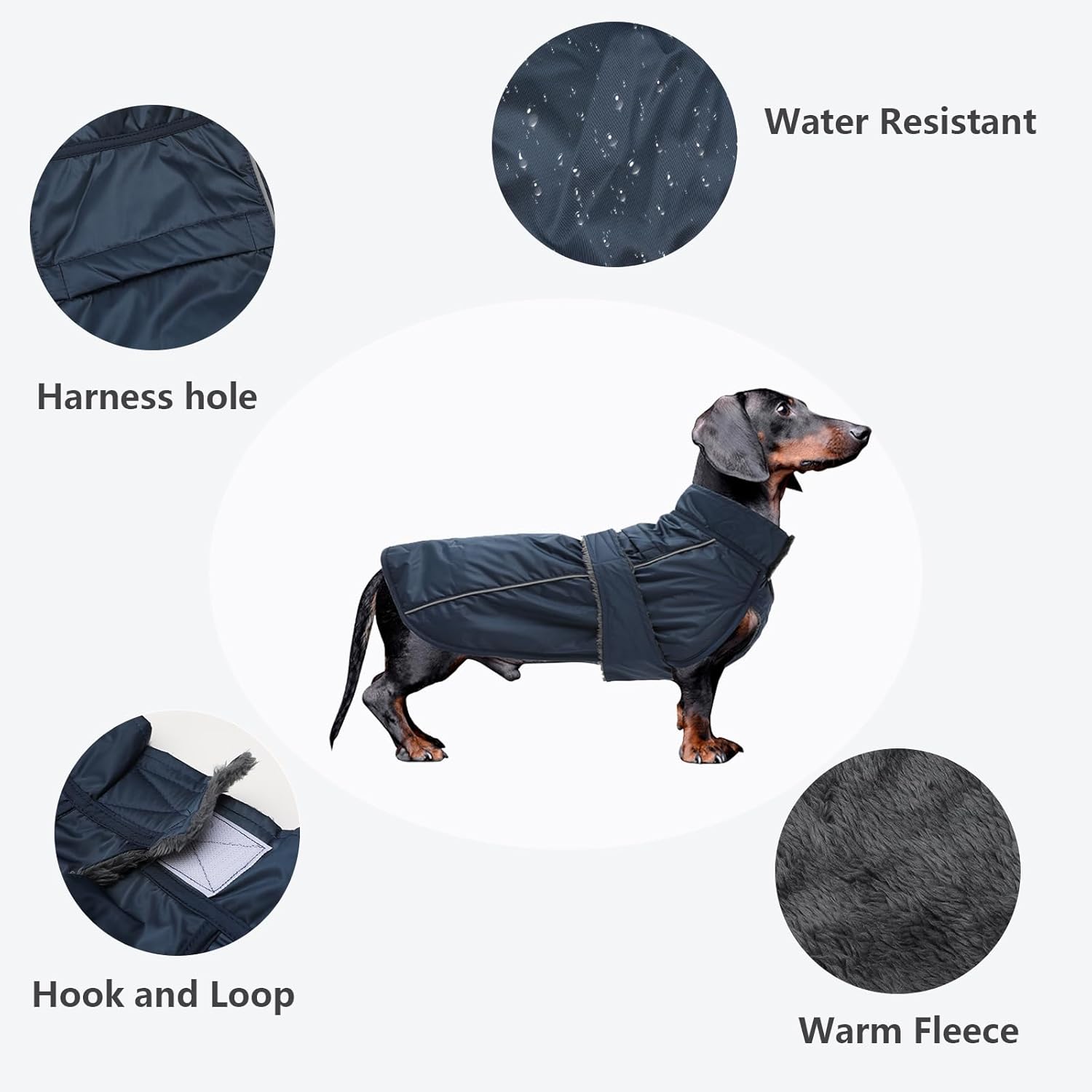 - 1. Hunderegenmantel - hochwertiger wasserdichter Hunderegenmantel mit spezieller Konturform, geeignet für Dackel, Minidackel und ähnliche Rassen.