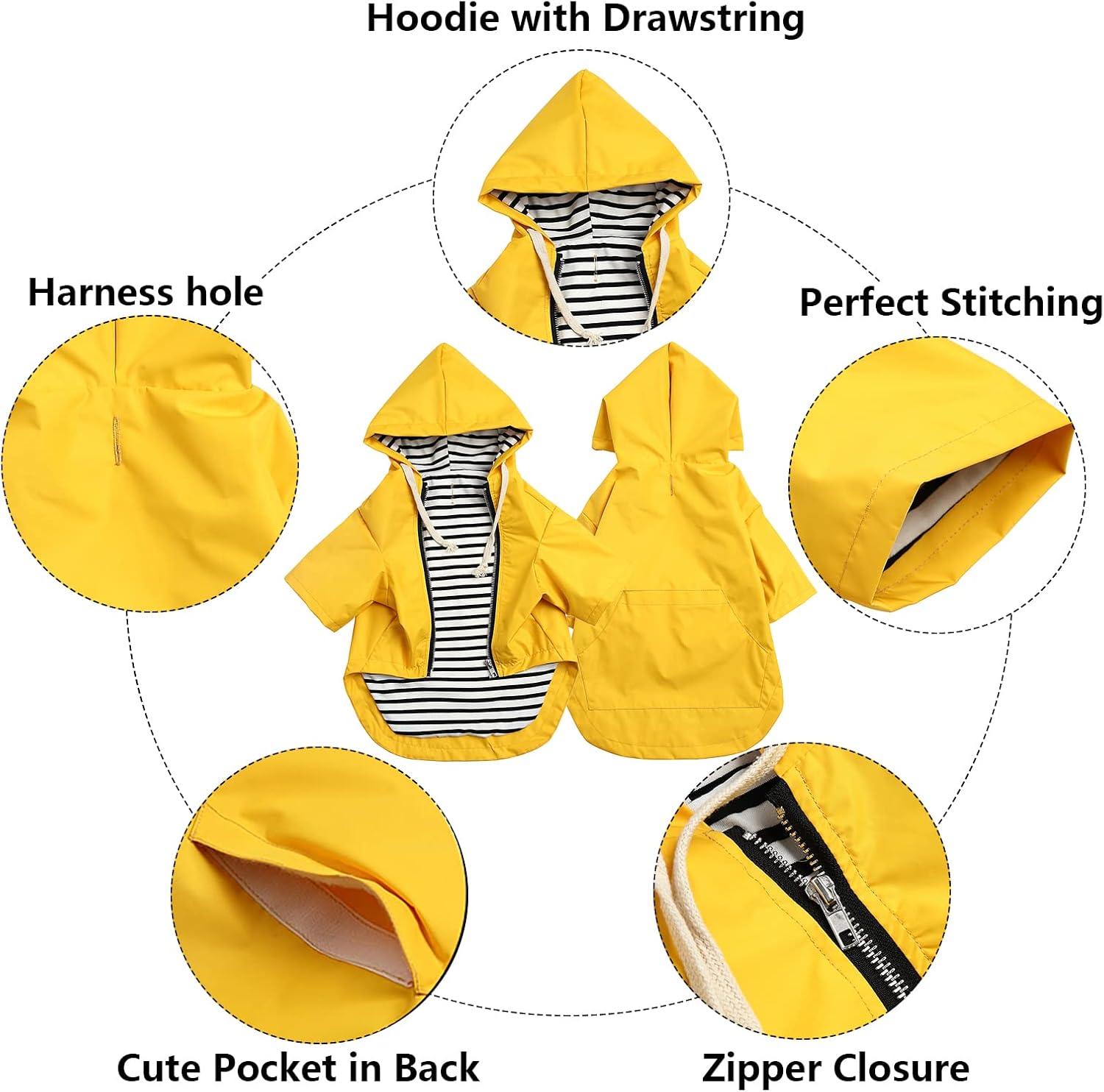 - 1.Hunderegenmantel: Doppellagiger Regenmantel mit Reissverschluss macht das Anziehen leicht und ist verstellbar und modisch.