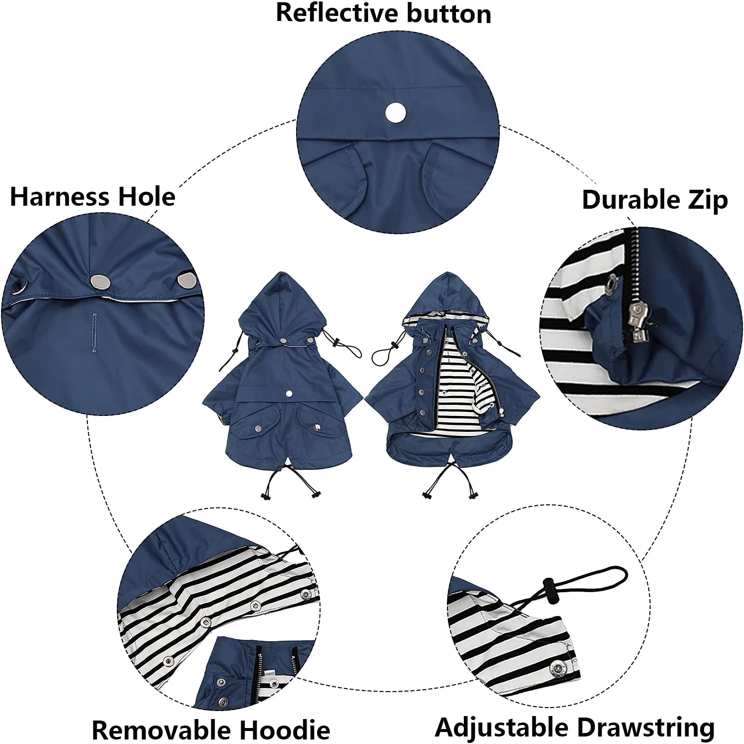 - 3. [Zweischichtiges Design] Der zweilagige Regenmantel mit Reissverschlüssen und reflektierenden Knöpfen macht es sicher und modisch, den Hund nachts herauszunehmen und ein einfaches und qualitativ hochwertiges Leben mit niedlichen Haustieren zu