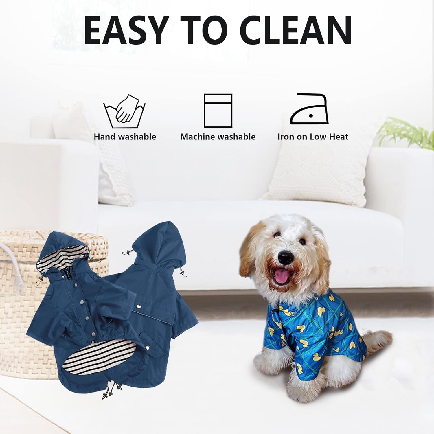 - 4. [Warm, bequem und leicht zu reinigen] Wasserdichter Hundemantel ist sehr leicht, weich, bequem und warm. Sie können die Oberfläche des Regenmantels mit einem feuchten, ausgewrungenen Tuch abwischen. Waschmaschinenfest.