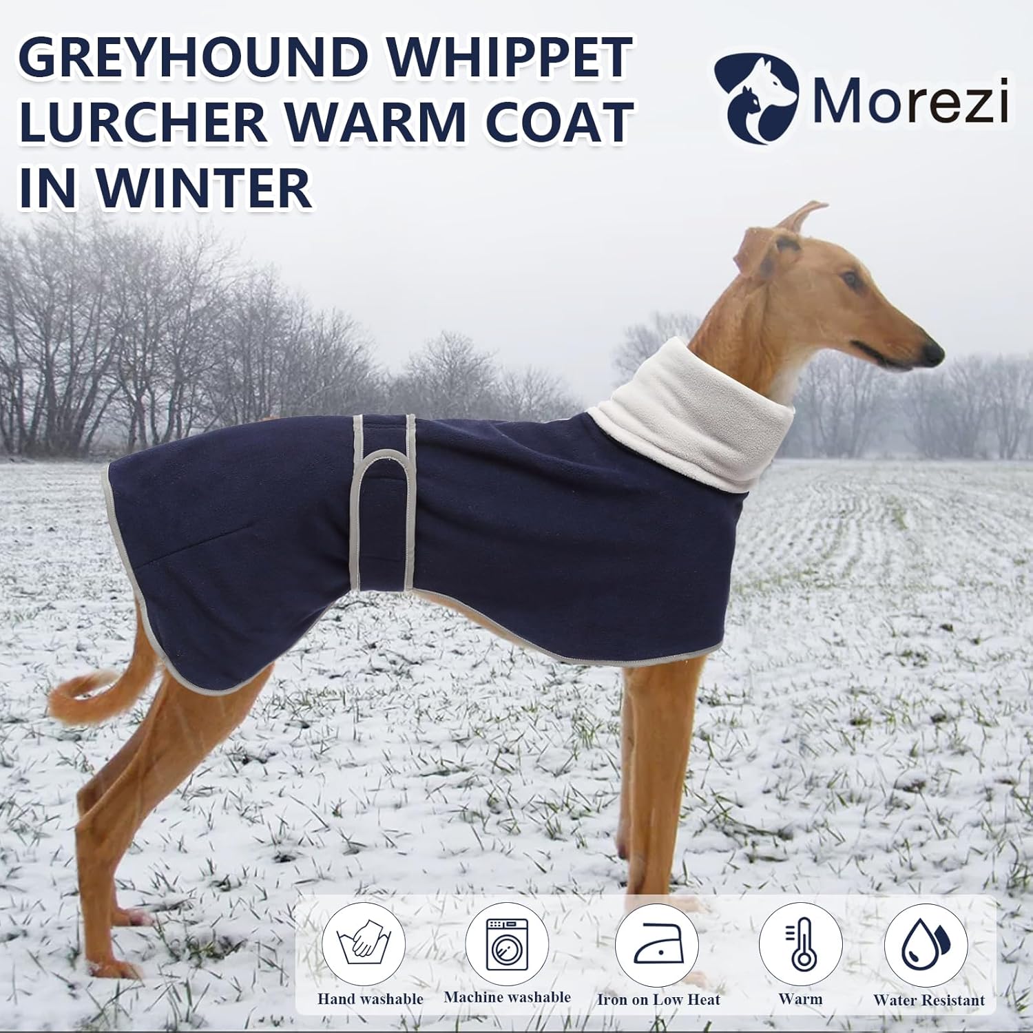 - 1. Winterhundemantel mit spezieller Konturform, geeignet für Windhunde, Lurker und Whippets.